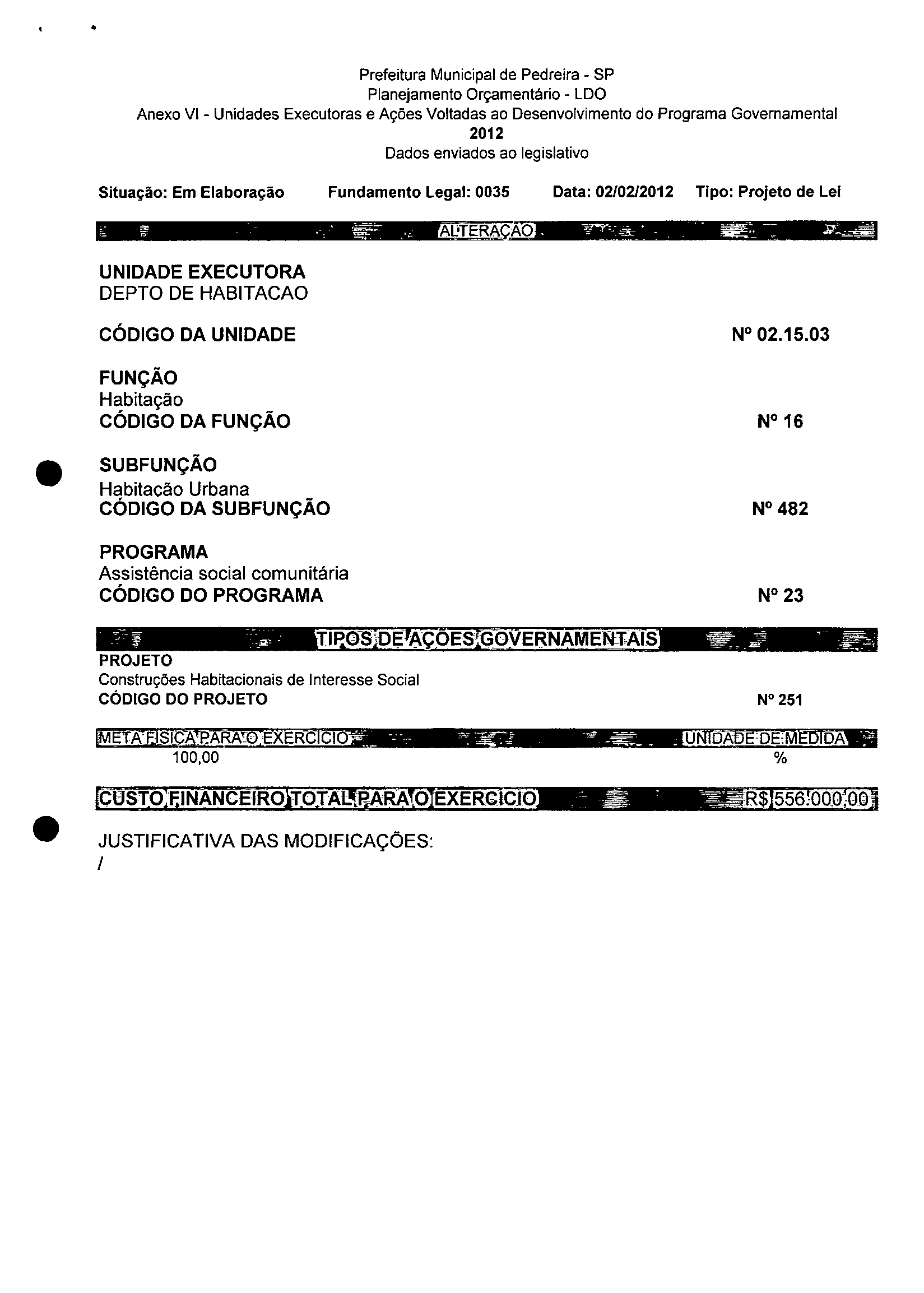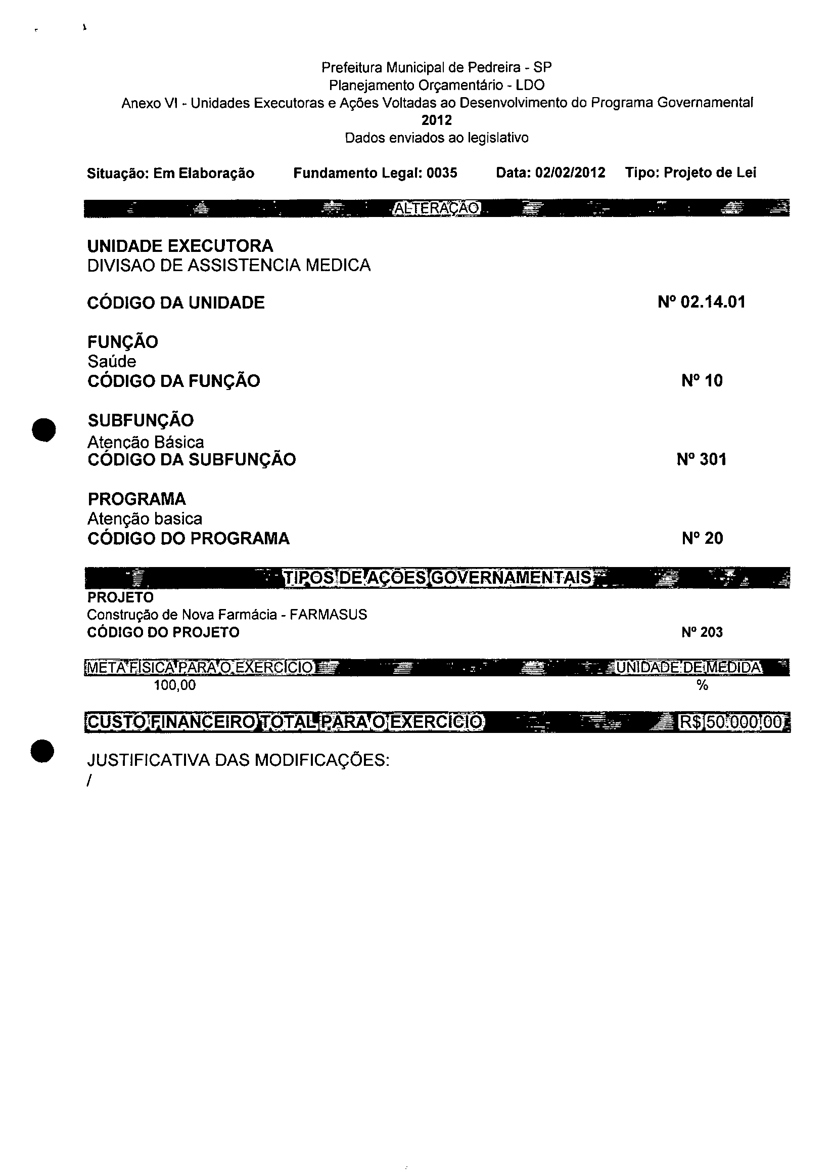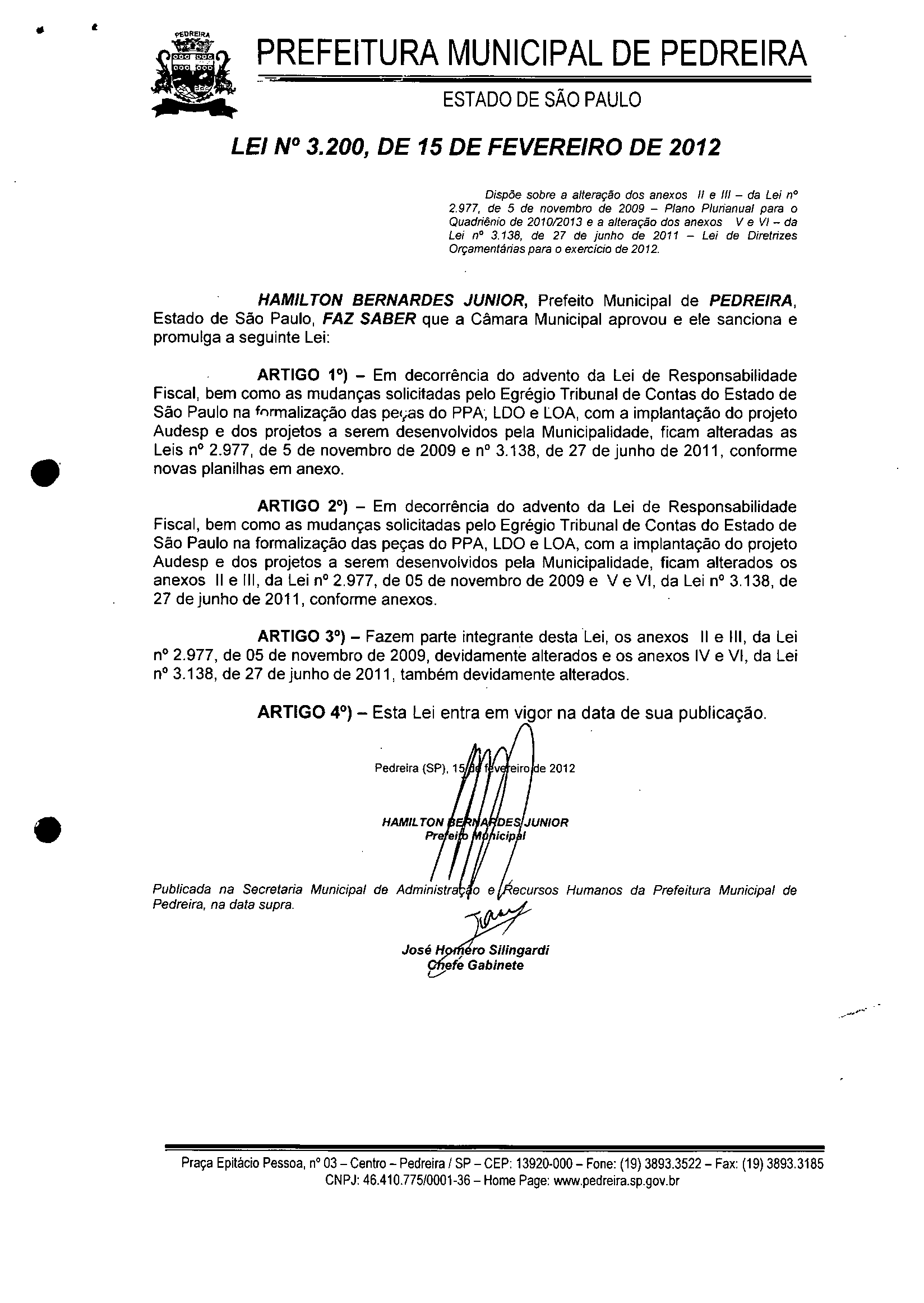 Lei Municipal - N° 3200 de 15/02/2012