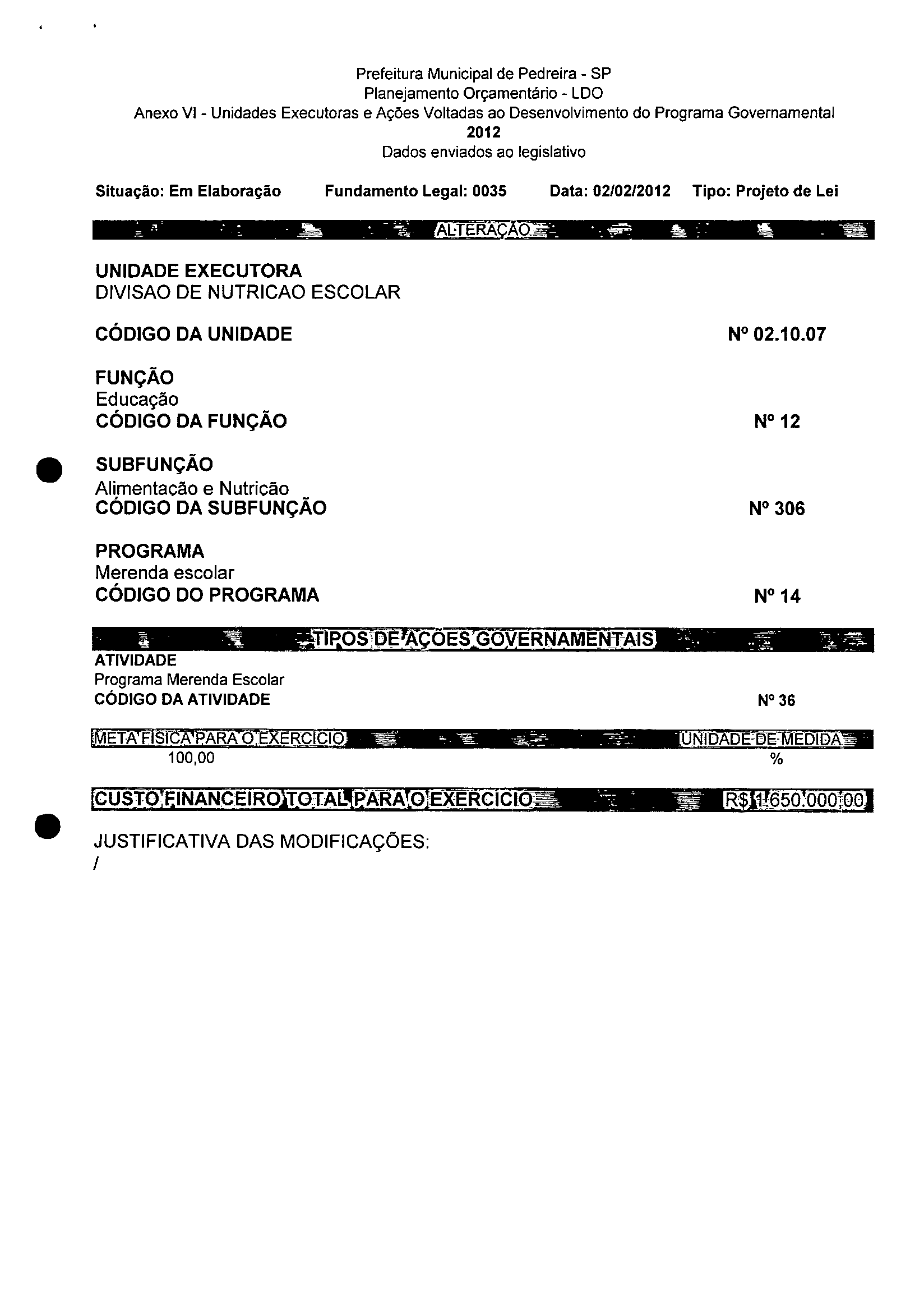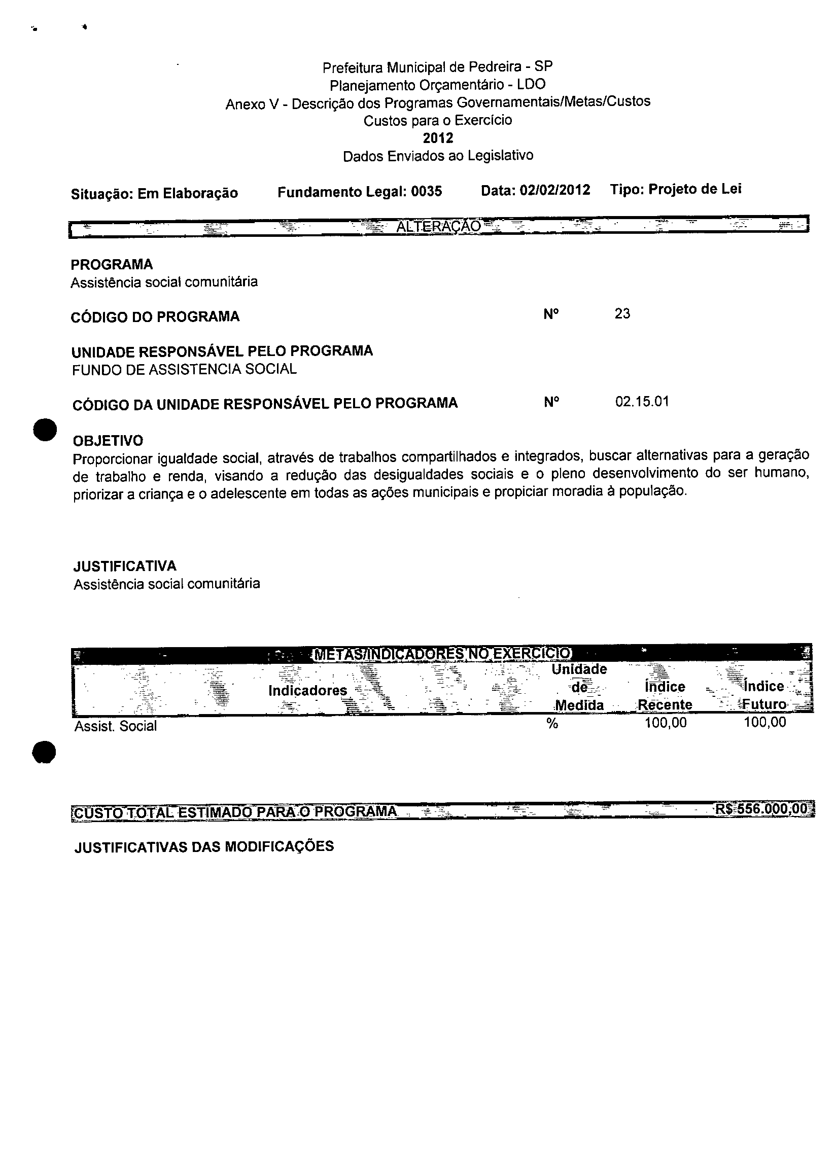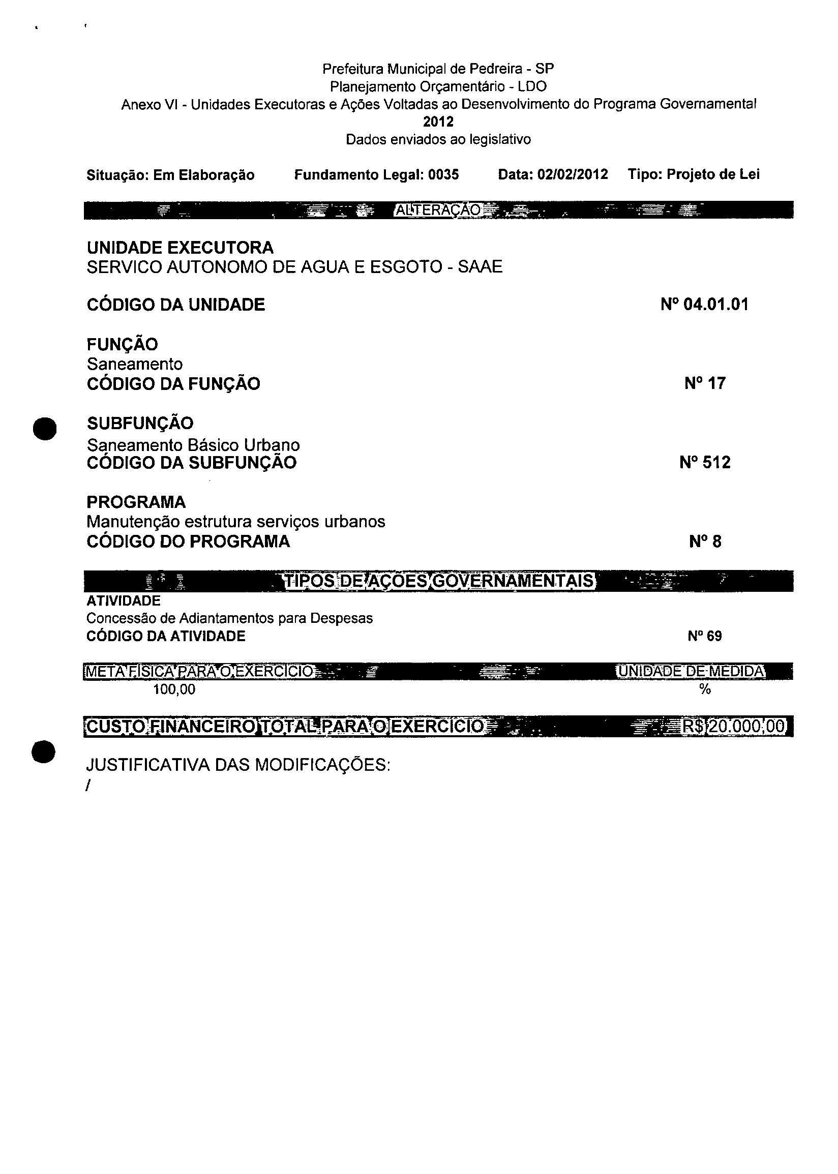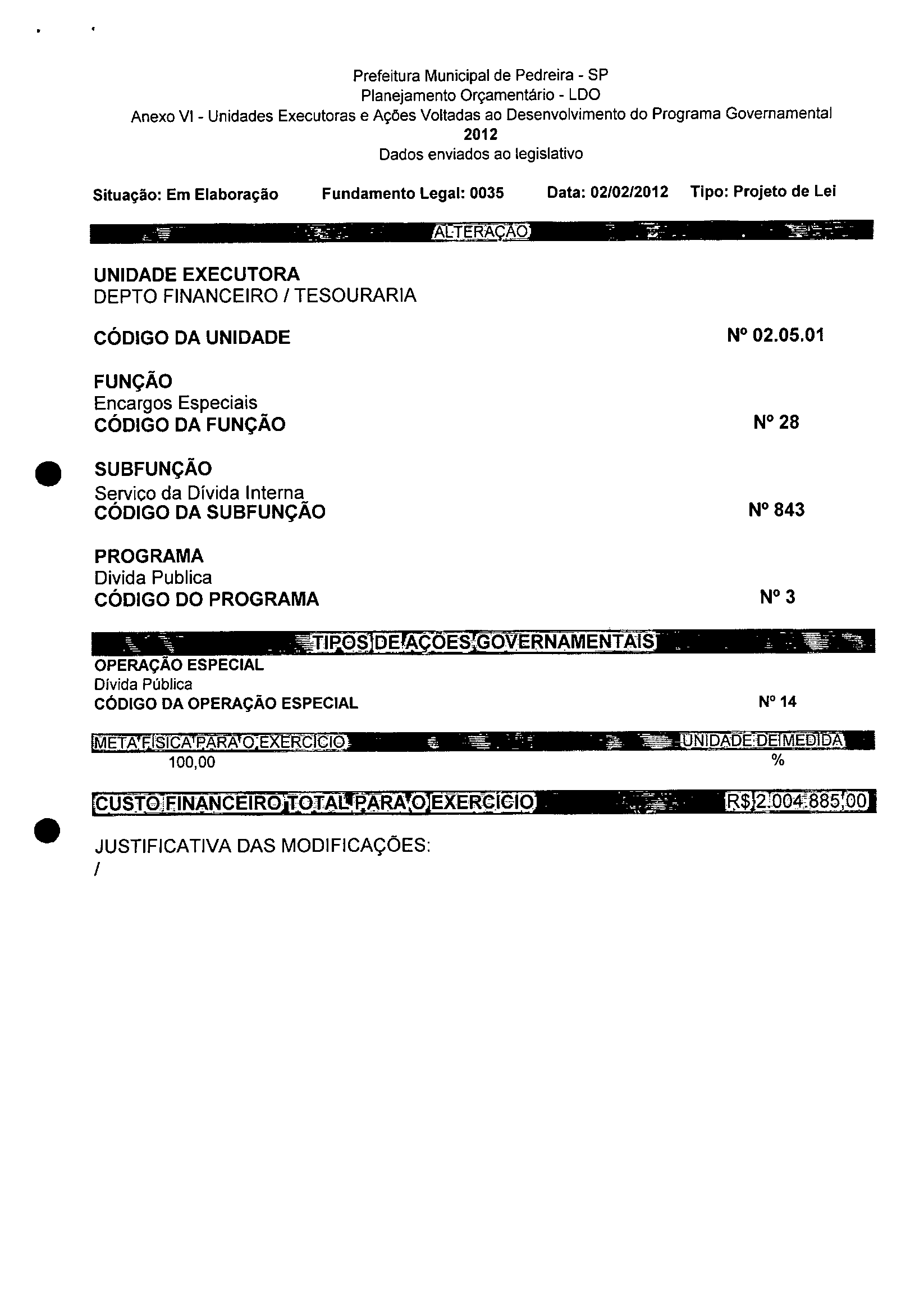 Lei Municipal - N° 3200 de 15/02/2012