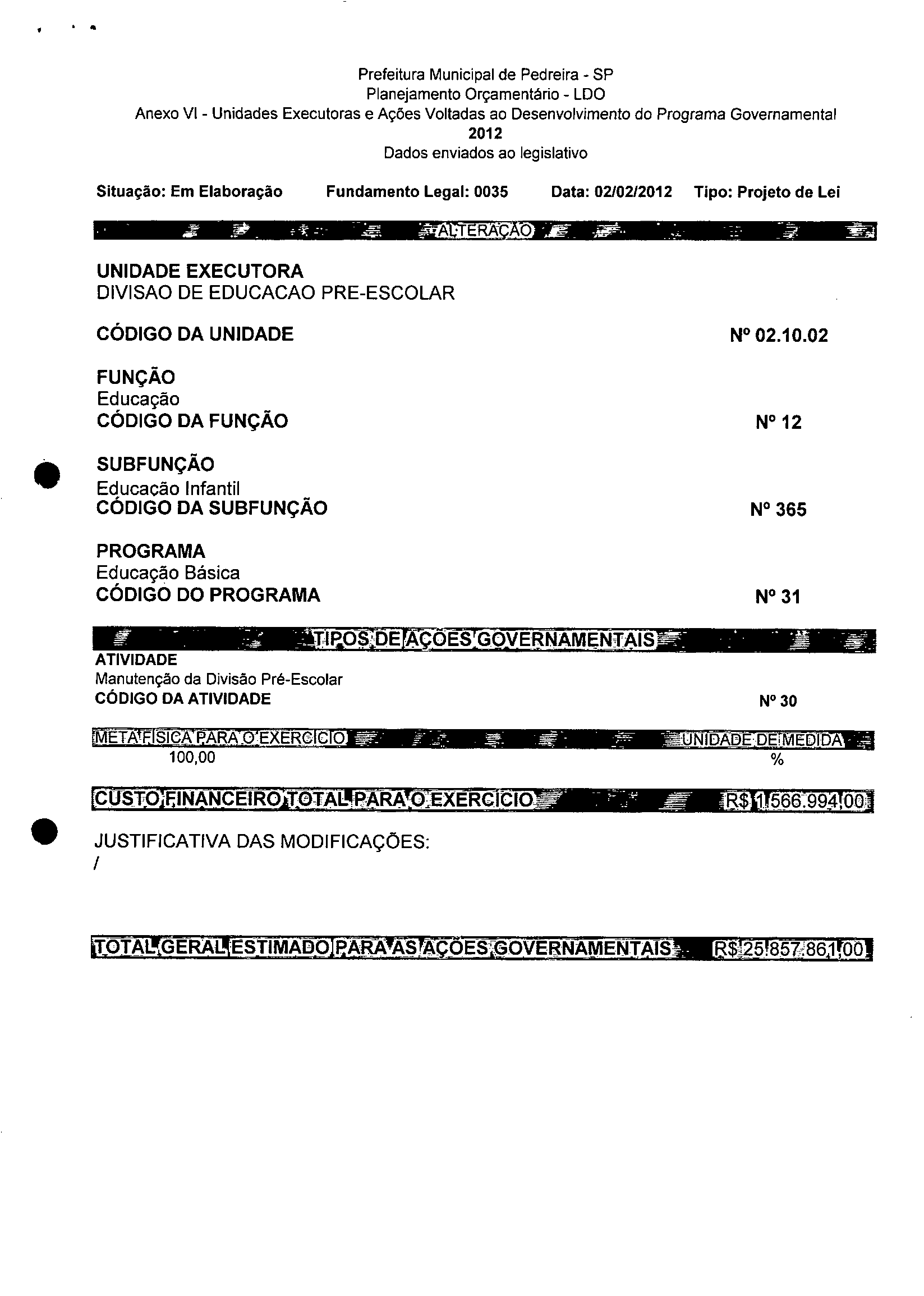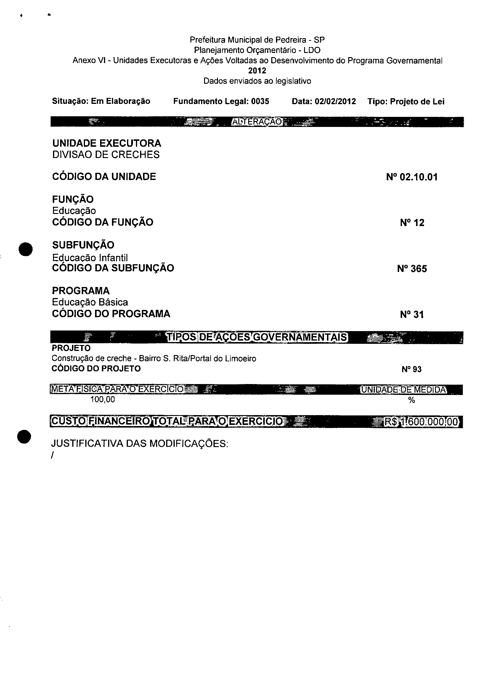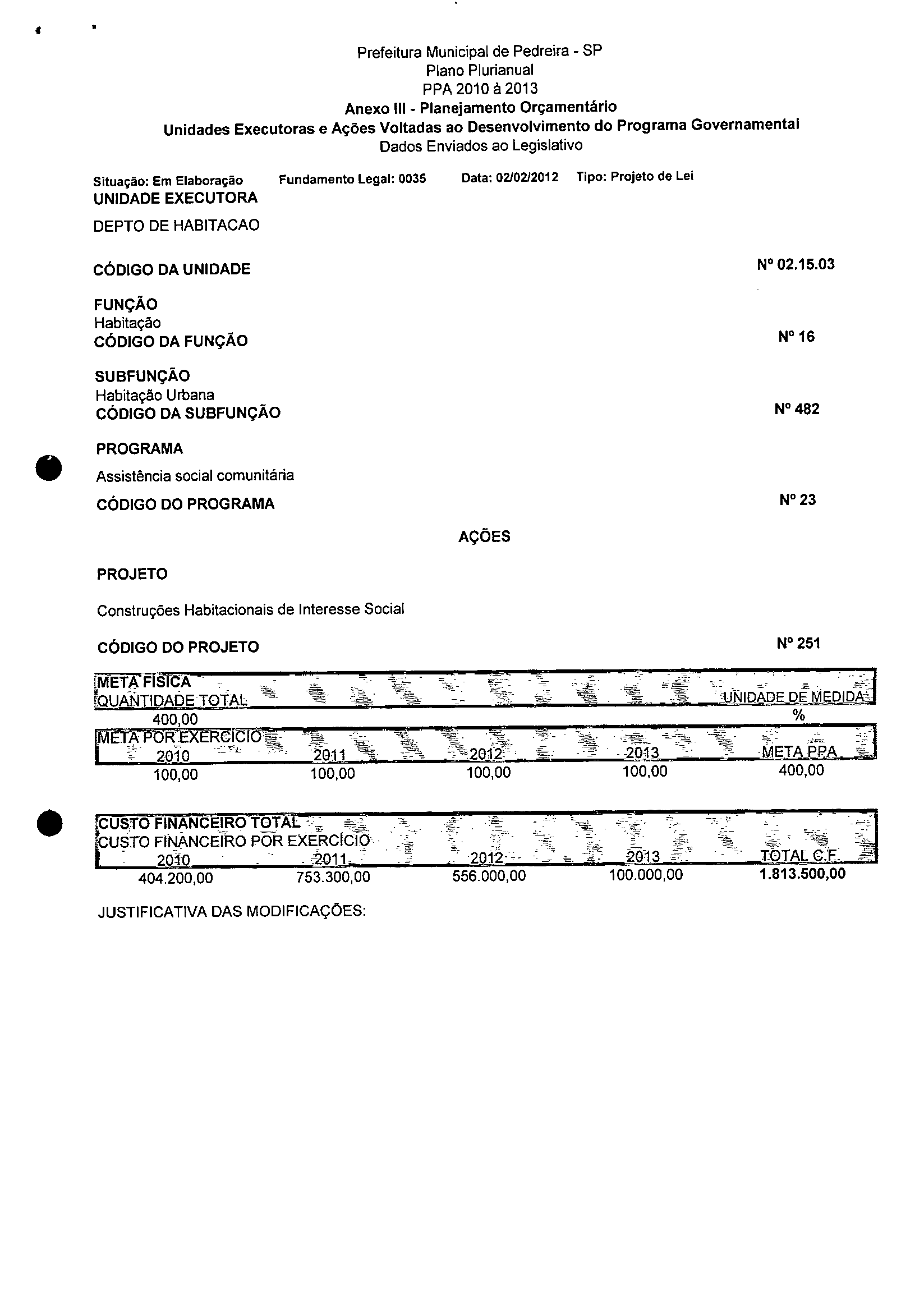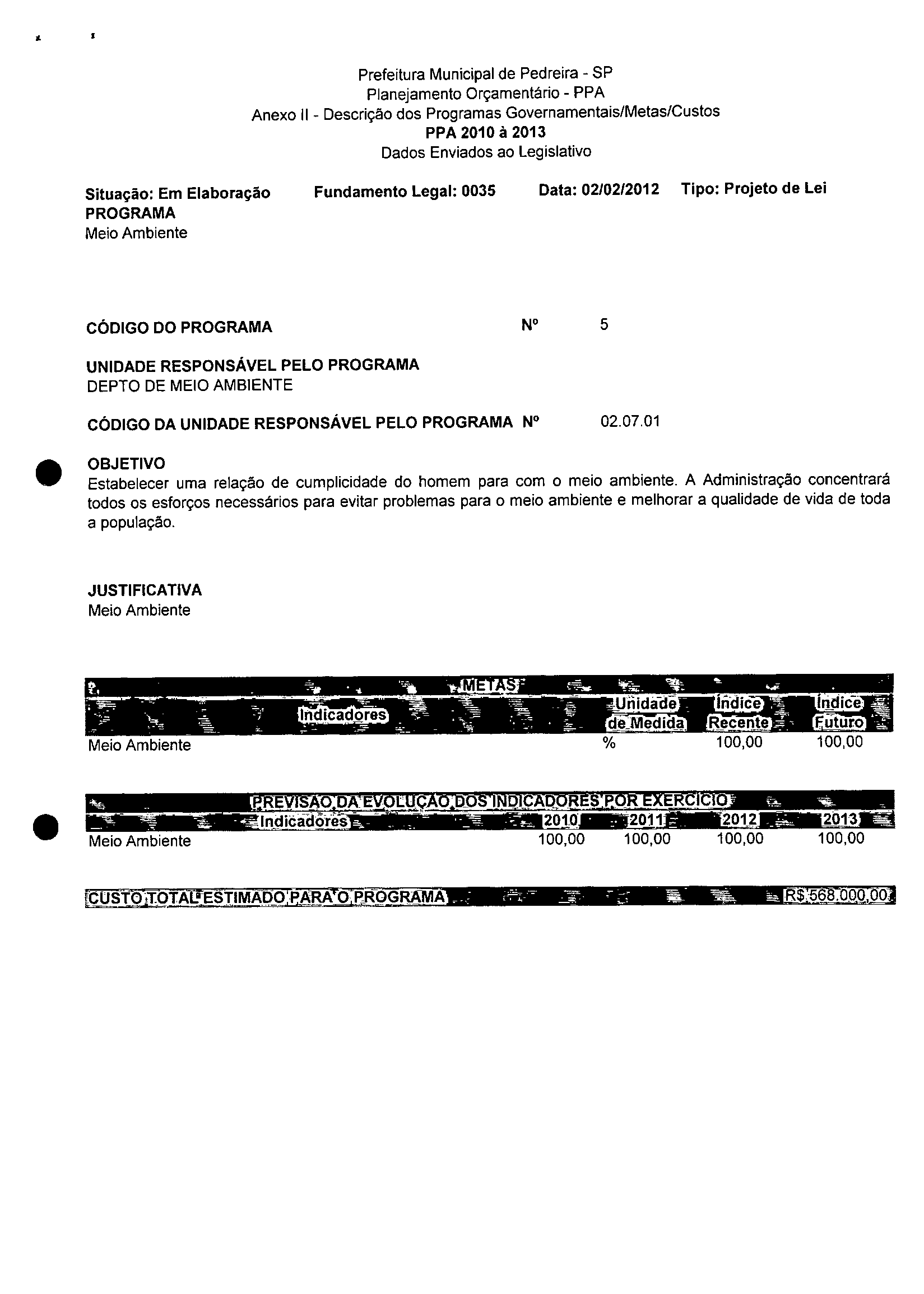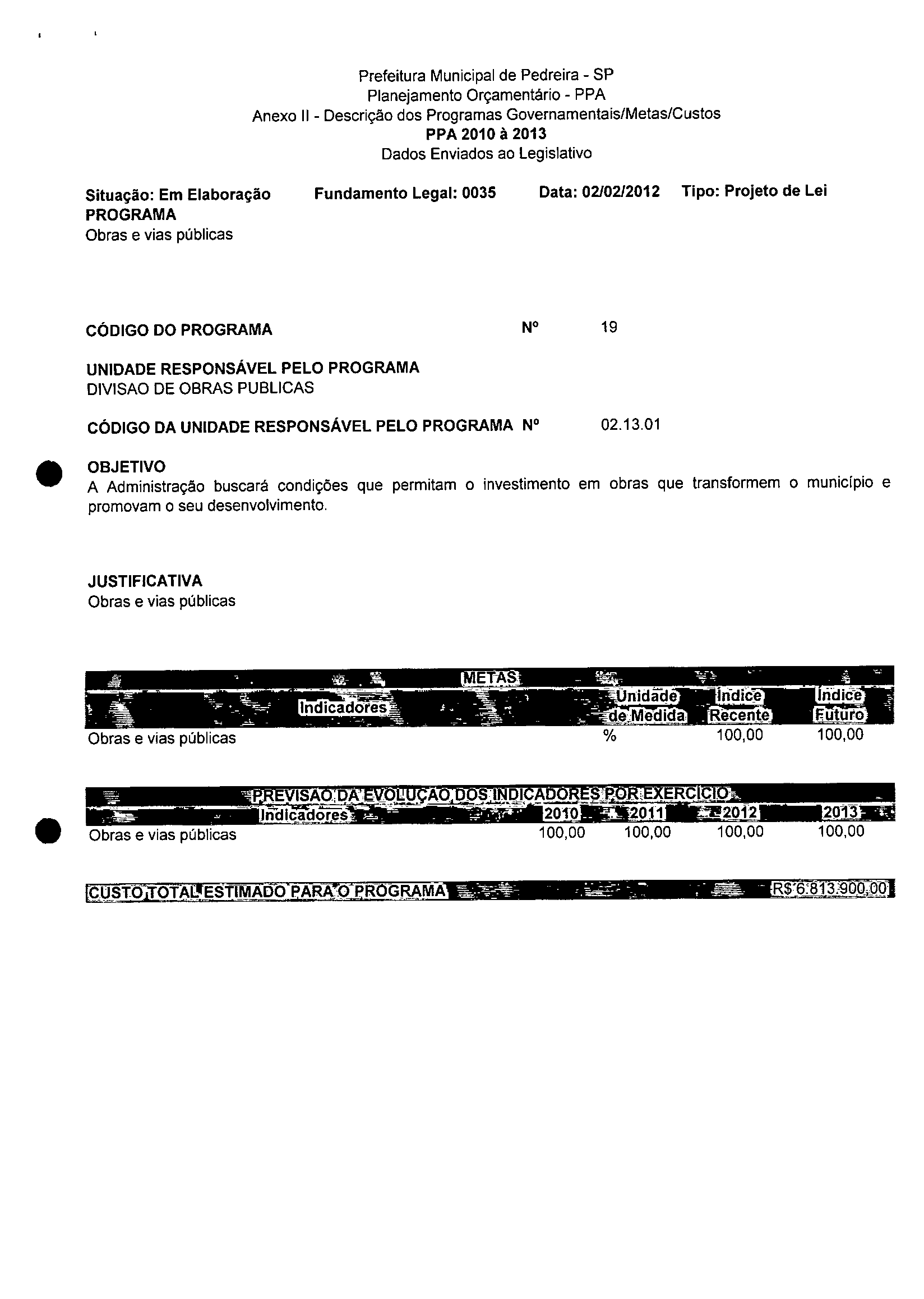 Ementa: Dispõe sobre a alteração dos anexos 1II e III -da Lei nº 2,977, de 5 de novembro de 2009 -Plano Plurianual para o Quadriênio de 2010/2013 e a alteração dos anexos Ve VI -da Lei nº 3.138, de 27 de junho de 2011 -Lei de Diretrizes Orçamentárias para o exercício de 2012.