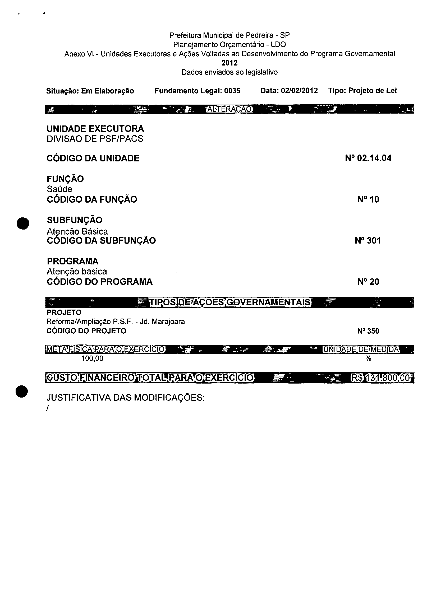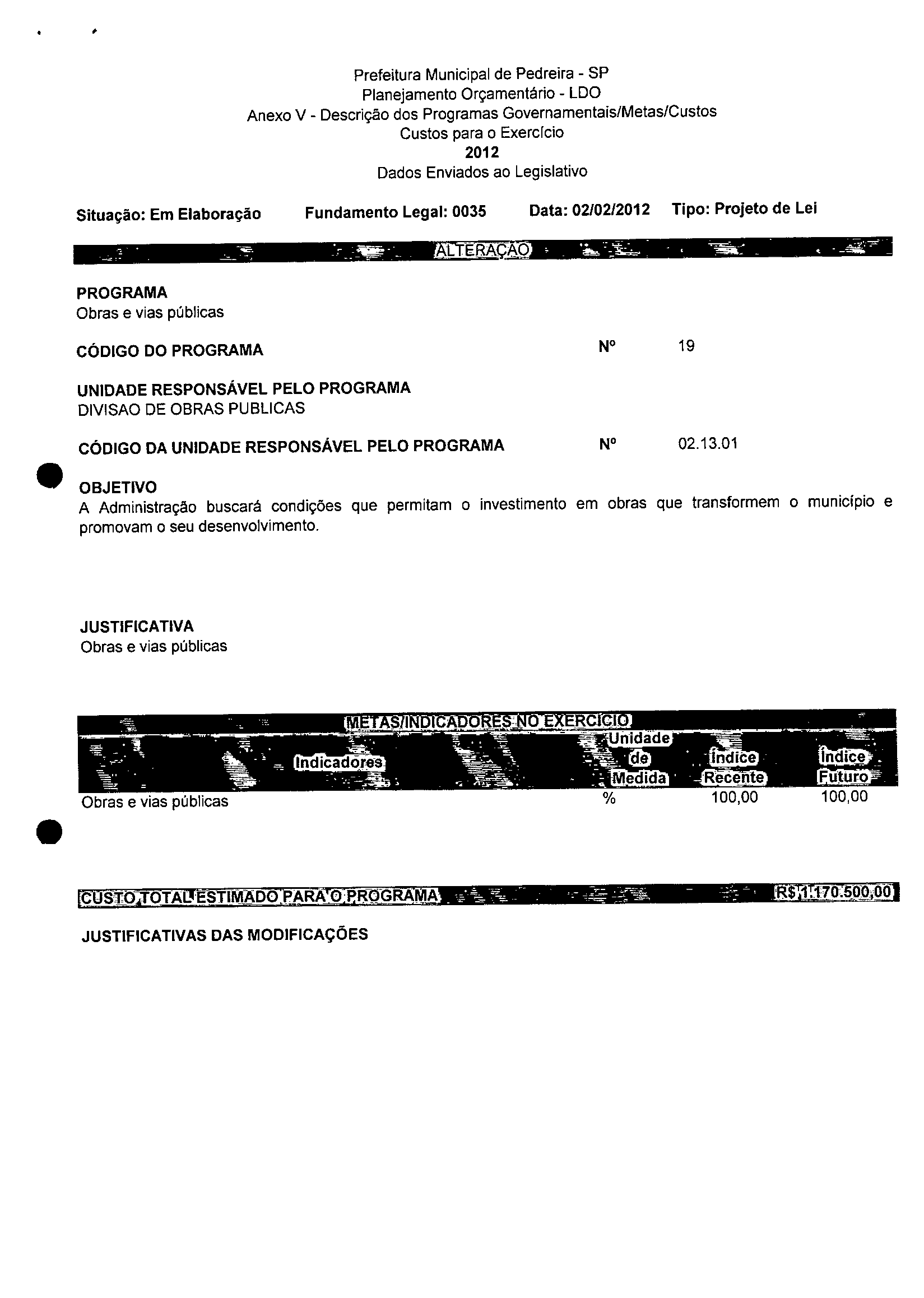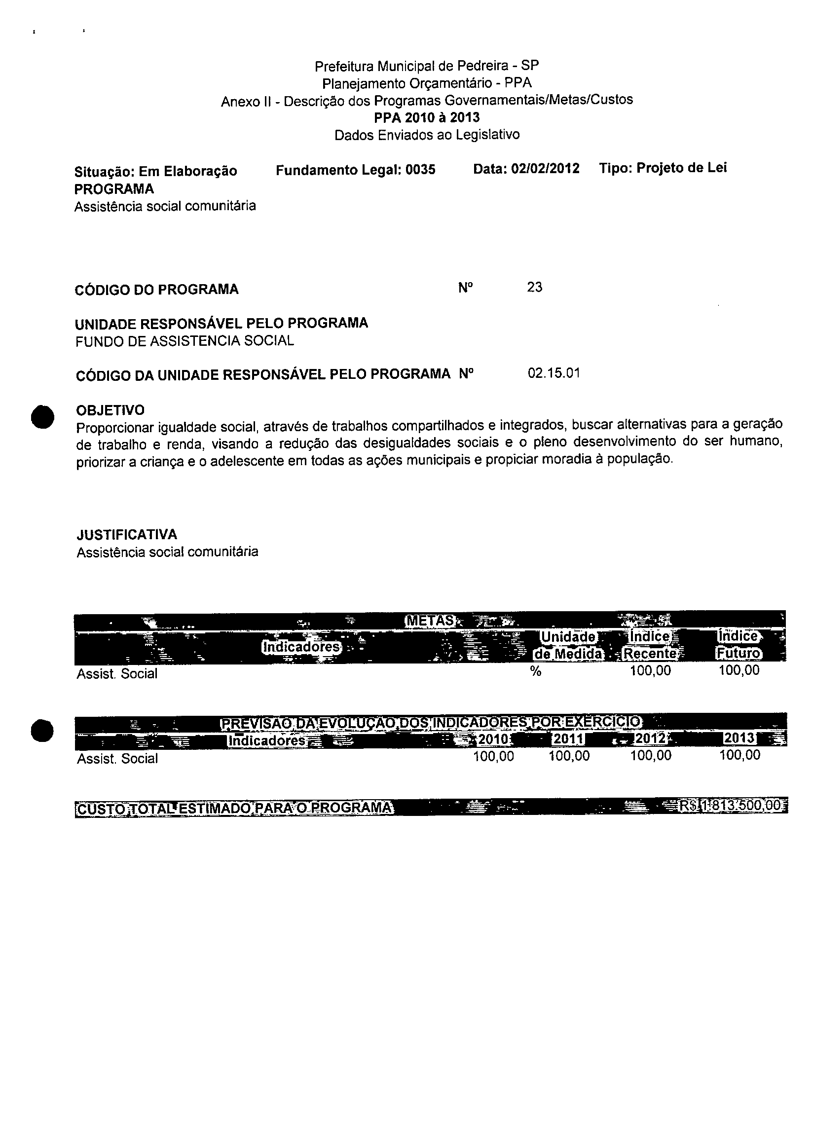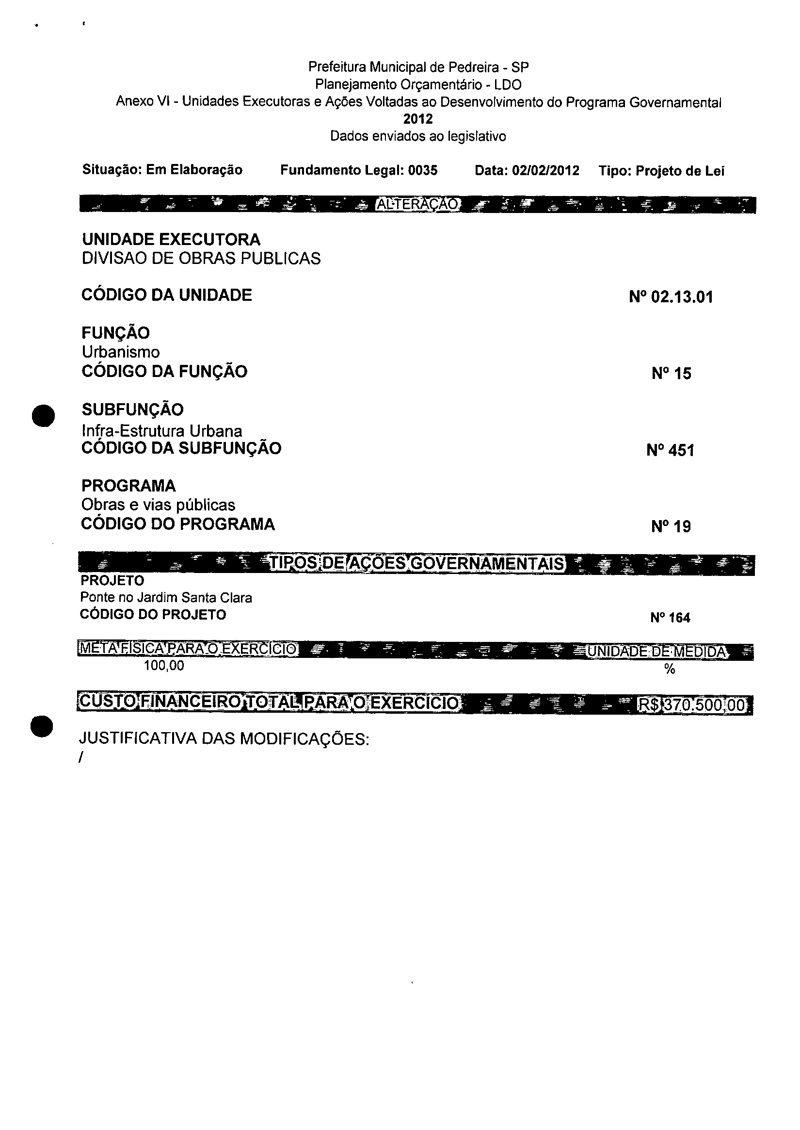 Ementa: Dispõe sobre a alteração dos anexos 1II e III -da Lei nº 2,977, de 5 de novembro de 2009 -Plano Plurianual para o Quadriênio de 2010/2013 e a alteração dos anexos Ve VI -da Lei nº 3.138, de 27 de junho de 2011 -Lei de Diretrizes Orçamentárias para o exercício de 2012.