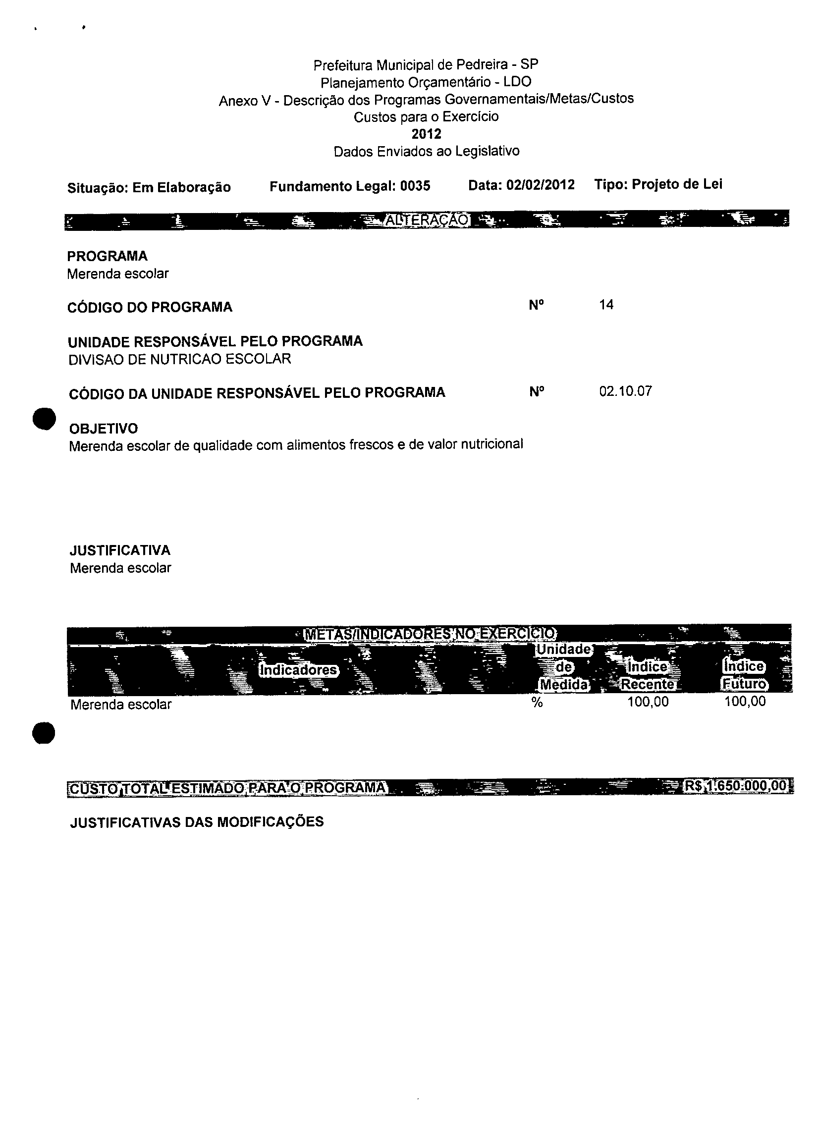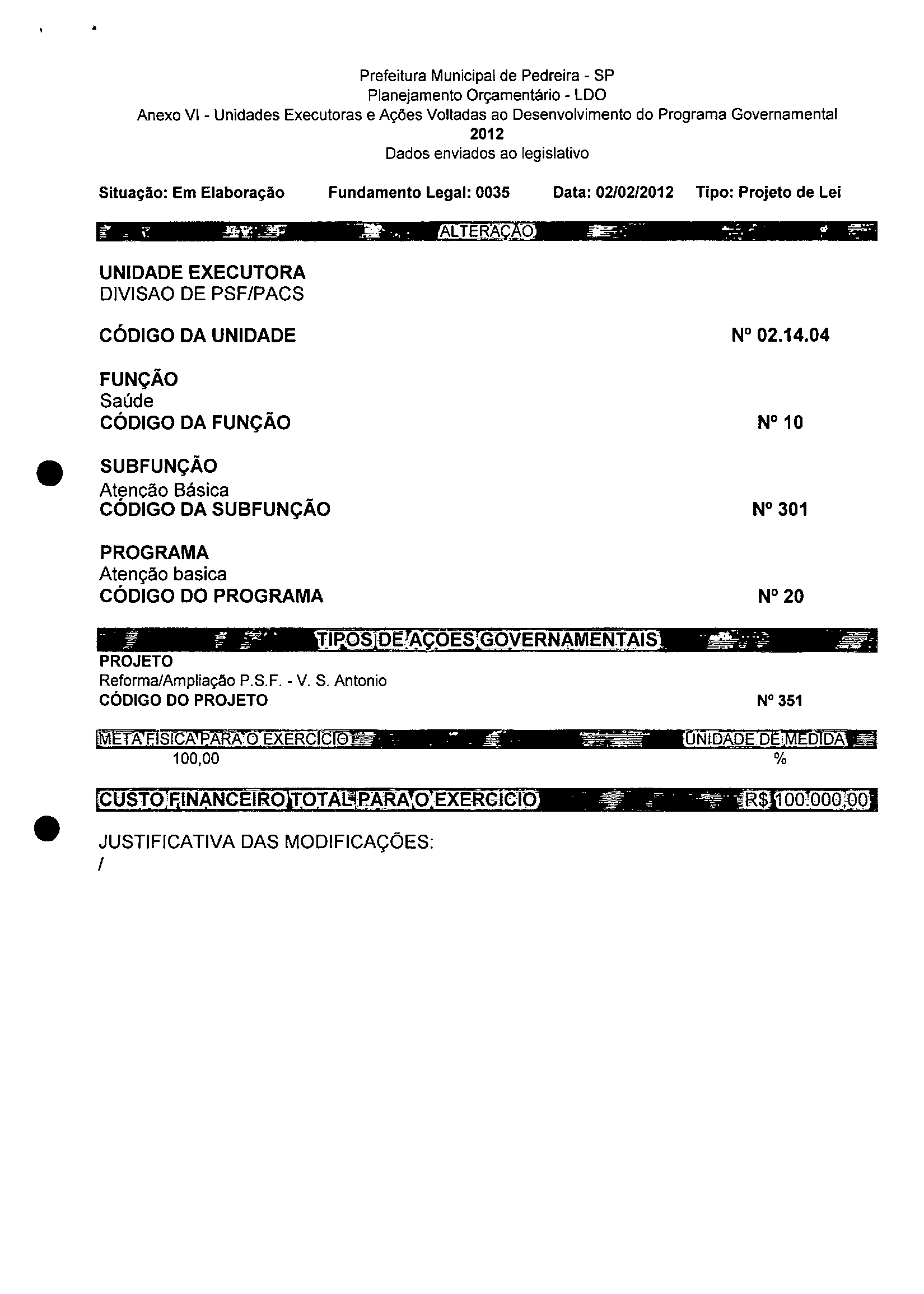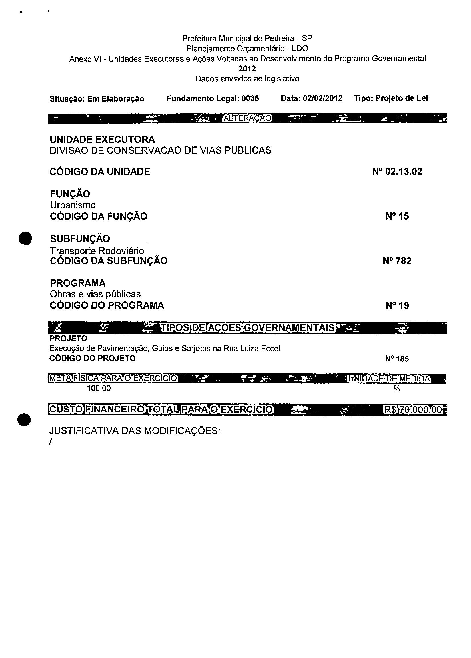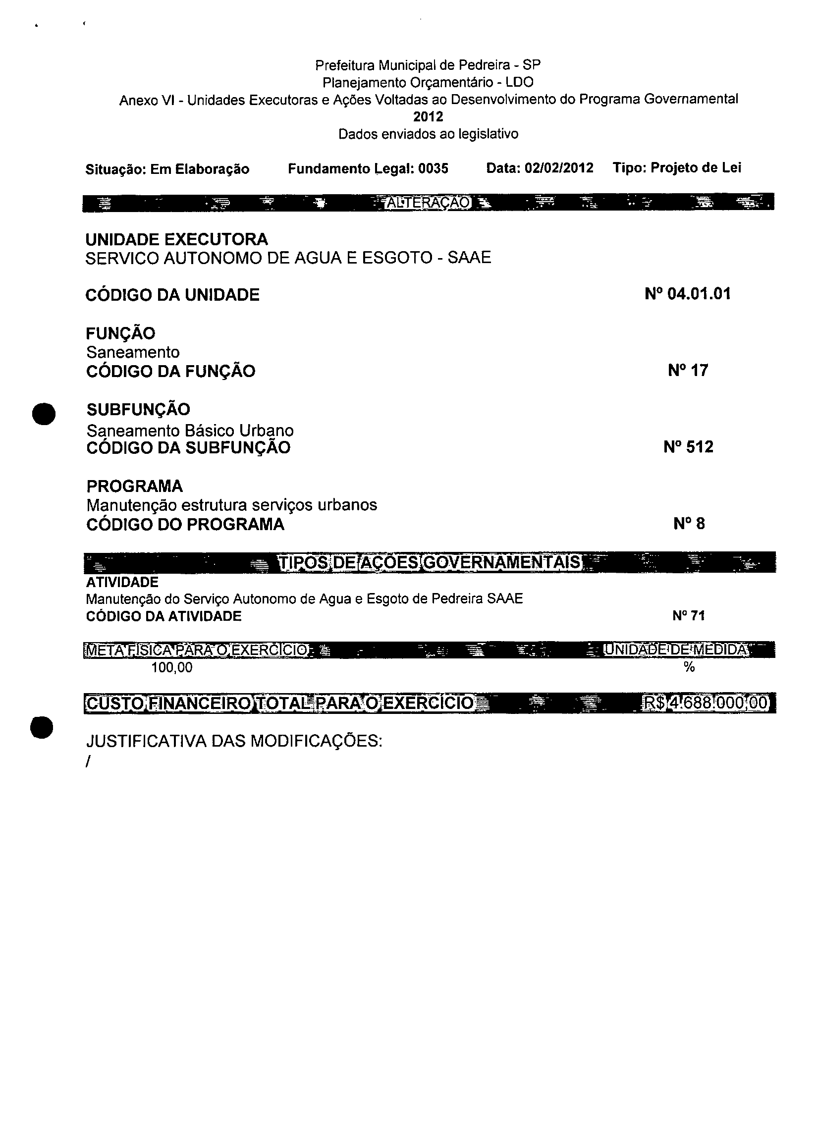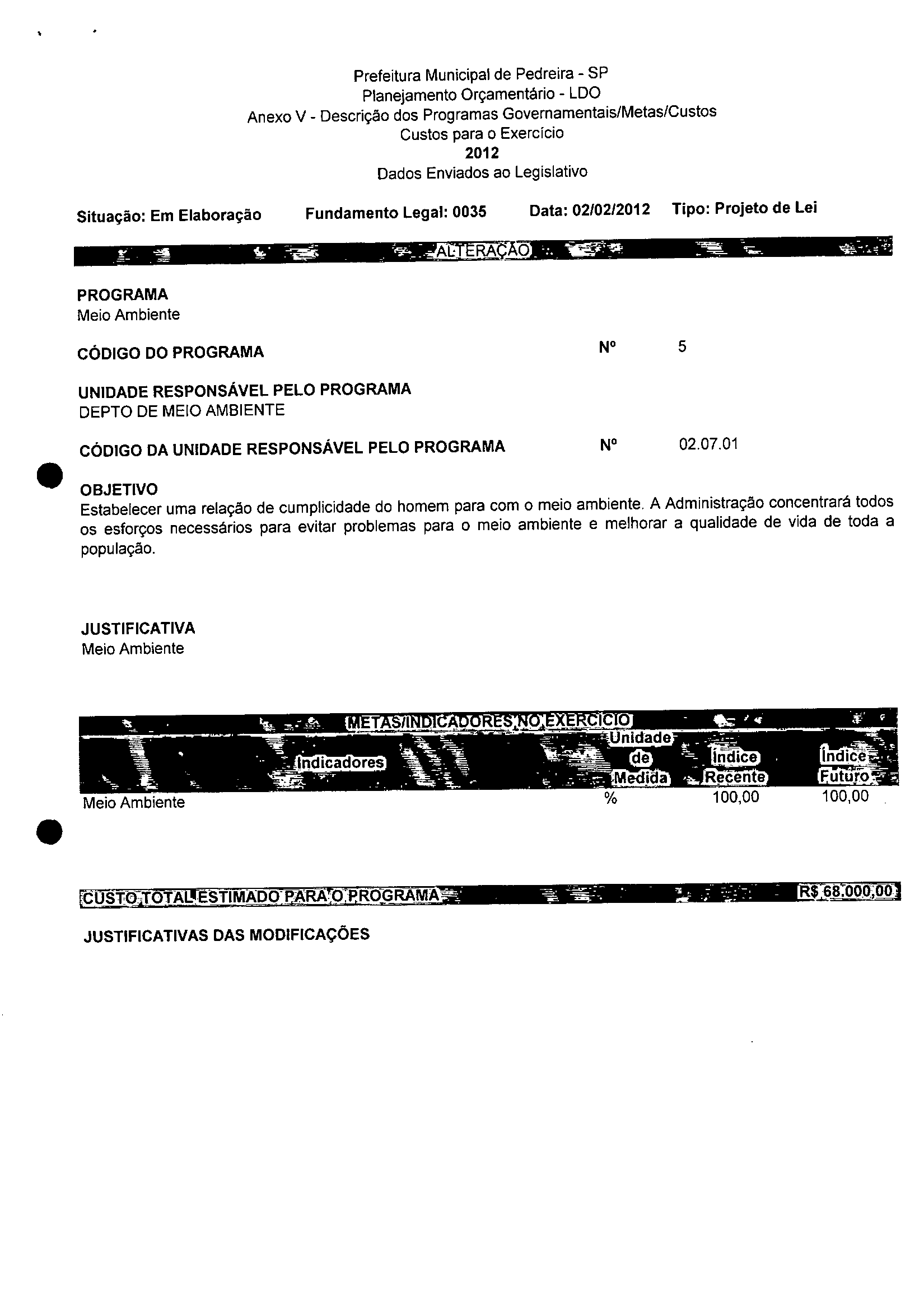Ementa: Dispõe sobre a alteração dos anexos 1II e III -da Lei nº 2,977, de 5 de novembro de 2009 -Plano Plurianual para o Quadriênio de 2010/2013 e a alteração dos anexos Ve VI -da Lei nº 3.138, de 27 de junho de 2011 -Lei de Diretrizes Orçamentárias para o exercício de 2012.
