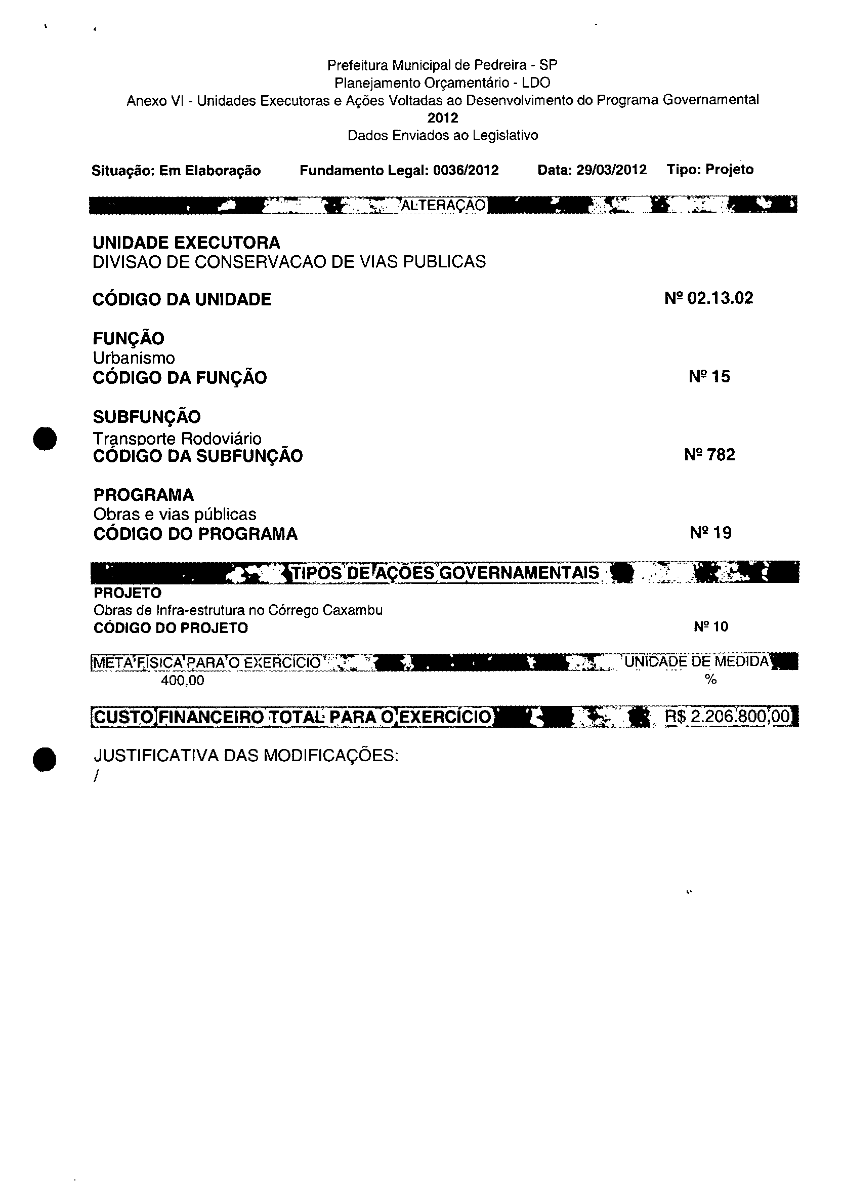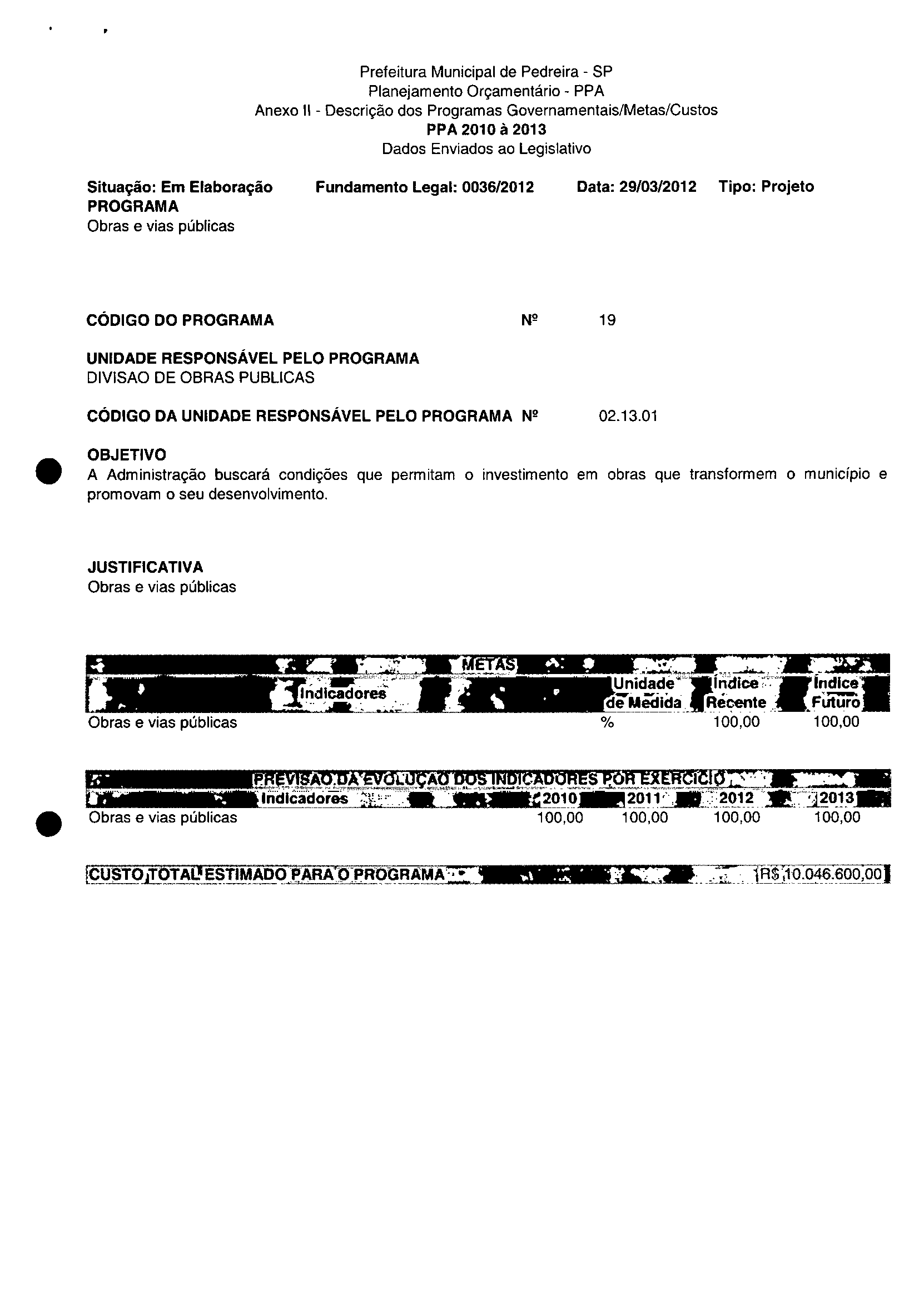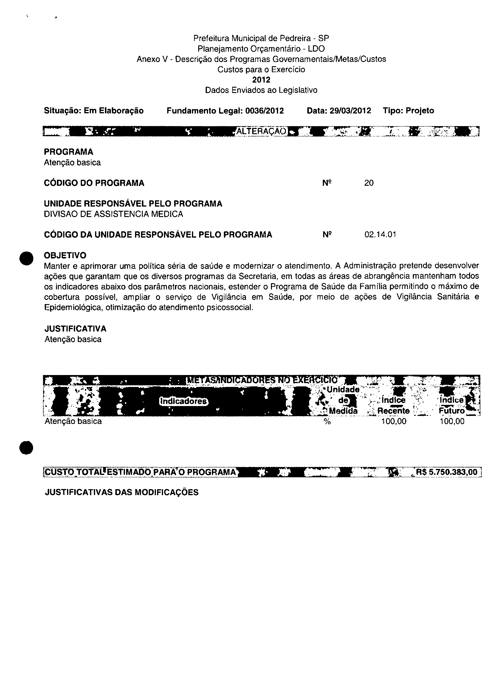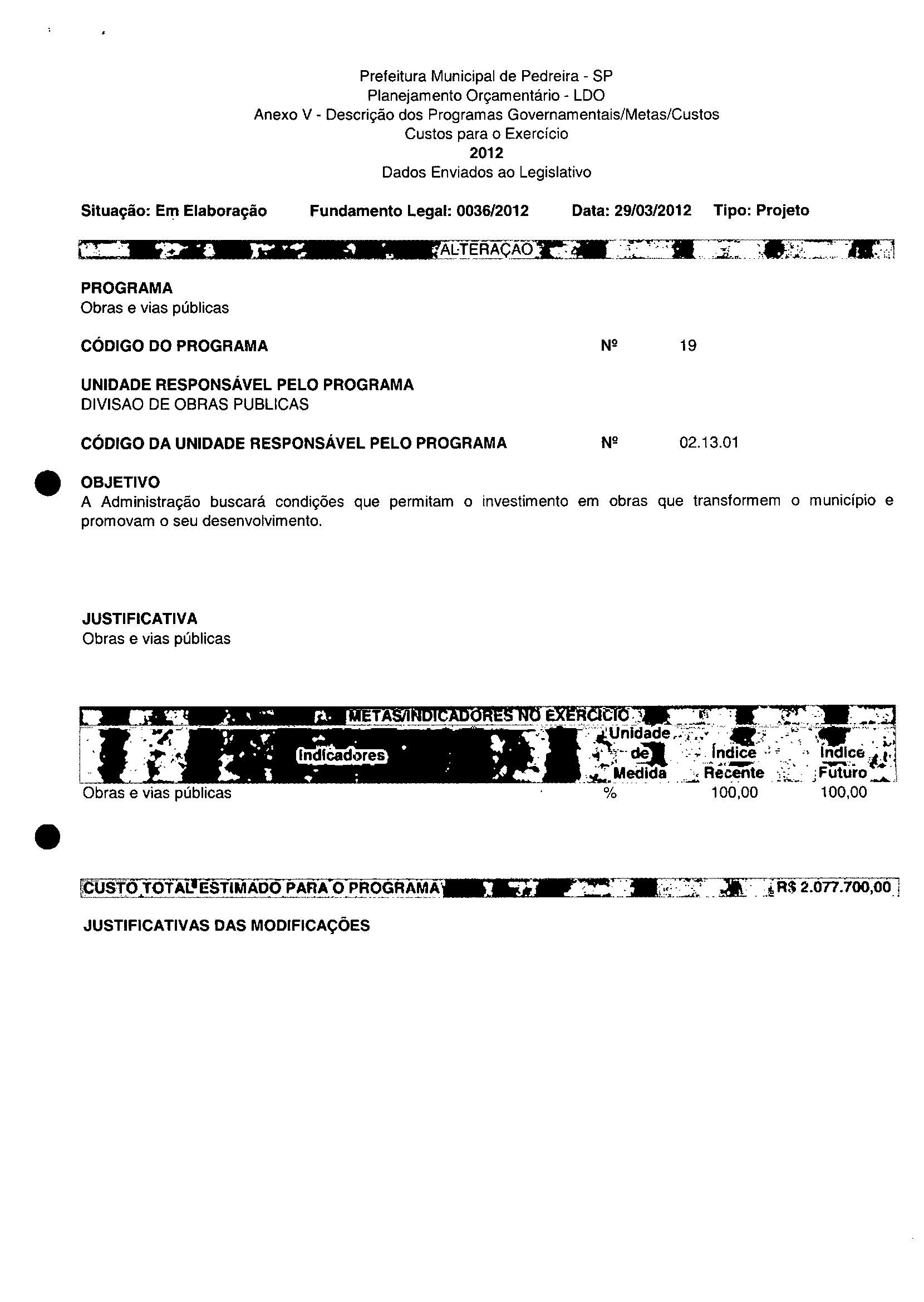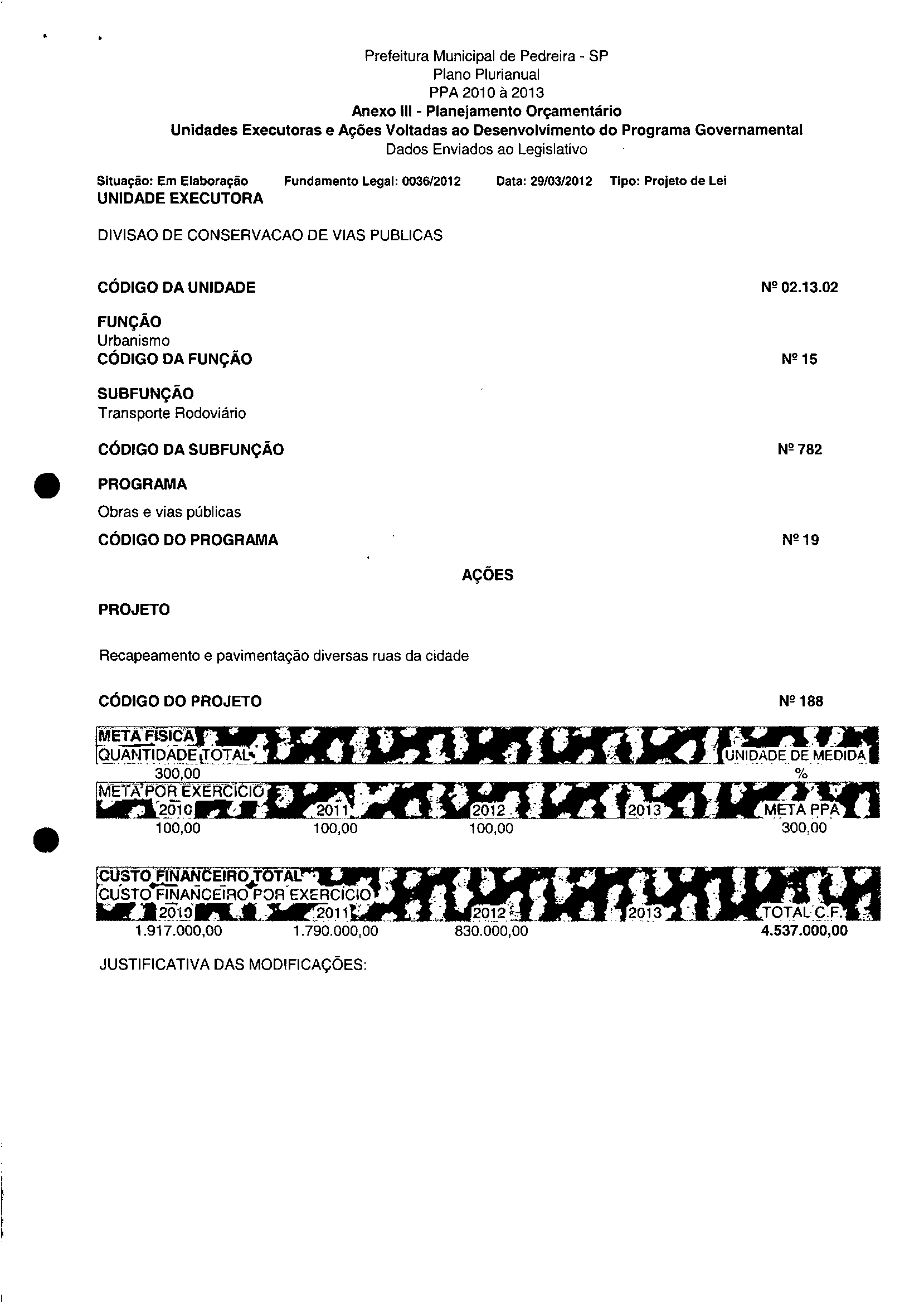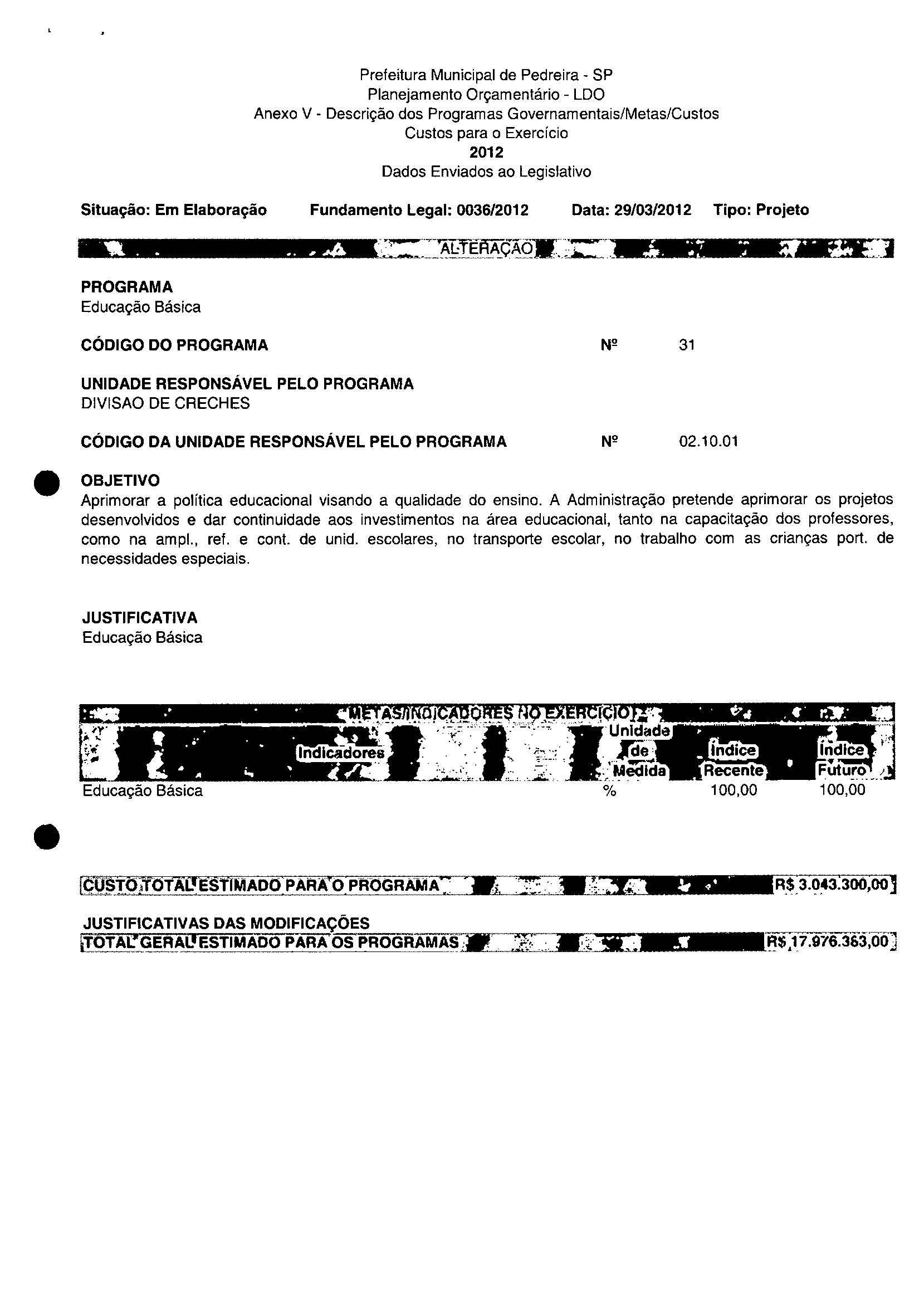 Ementa: Dispõe sobre a alteração dos anexos II e III -da Lei nº 2.977, de 5 de novembro de 2009 -Plano Plurianual para o Quadriénio de 2010/2013 e a alteração dos anexos Ve VI-da Lei nº 3,138, de 27 de junho de 2011 -Lei de Diretrizes Orçamentárias para o exercício de 2012.