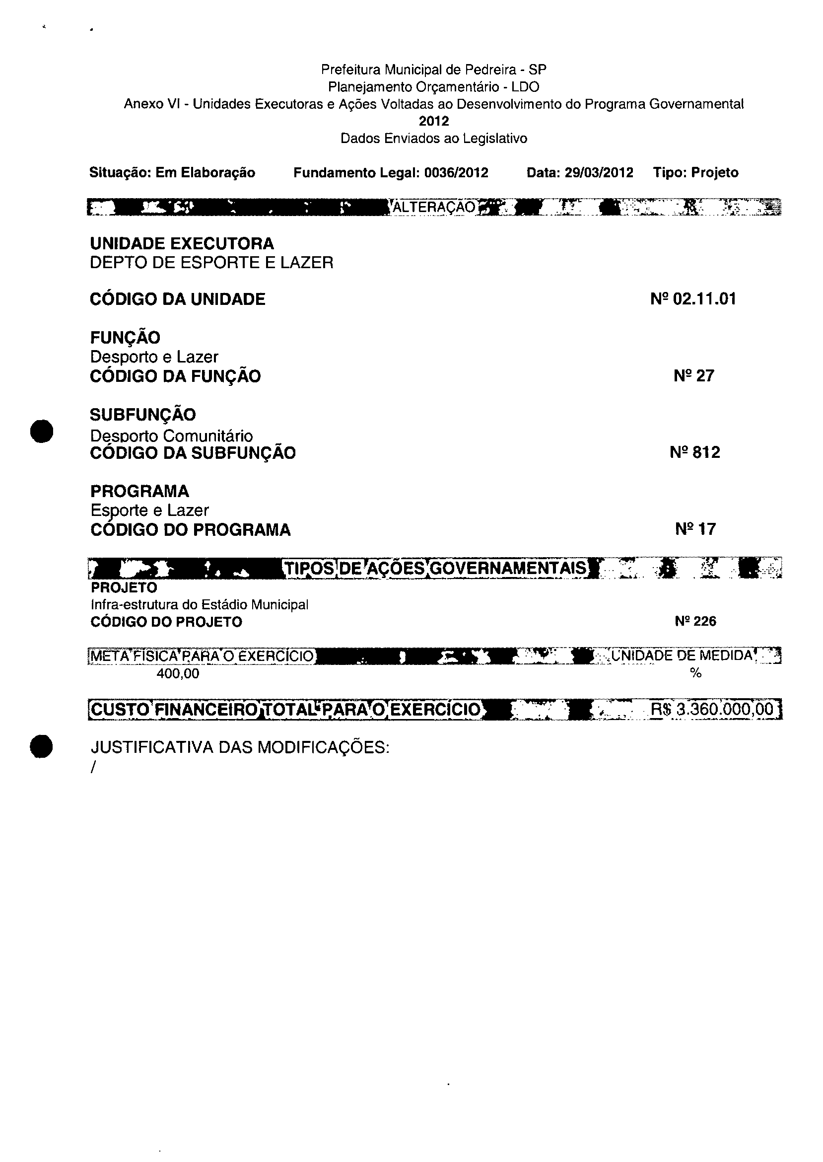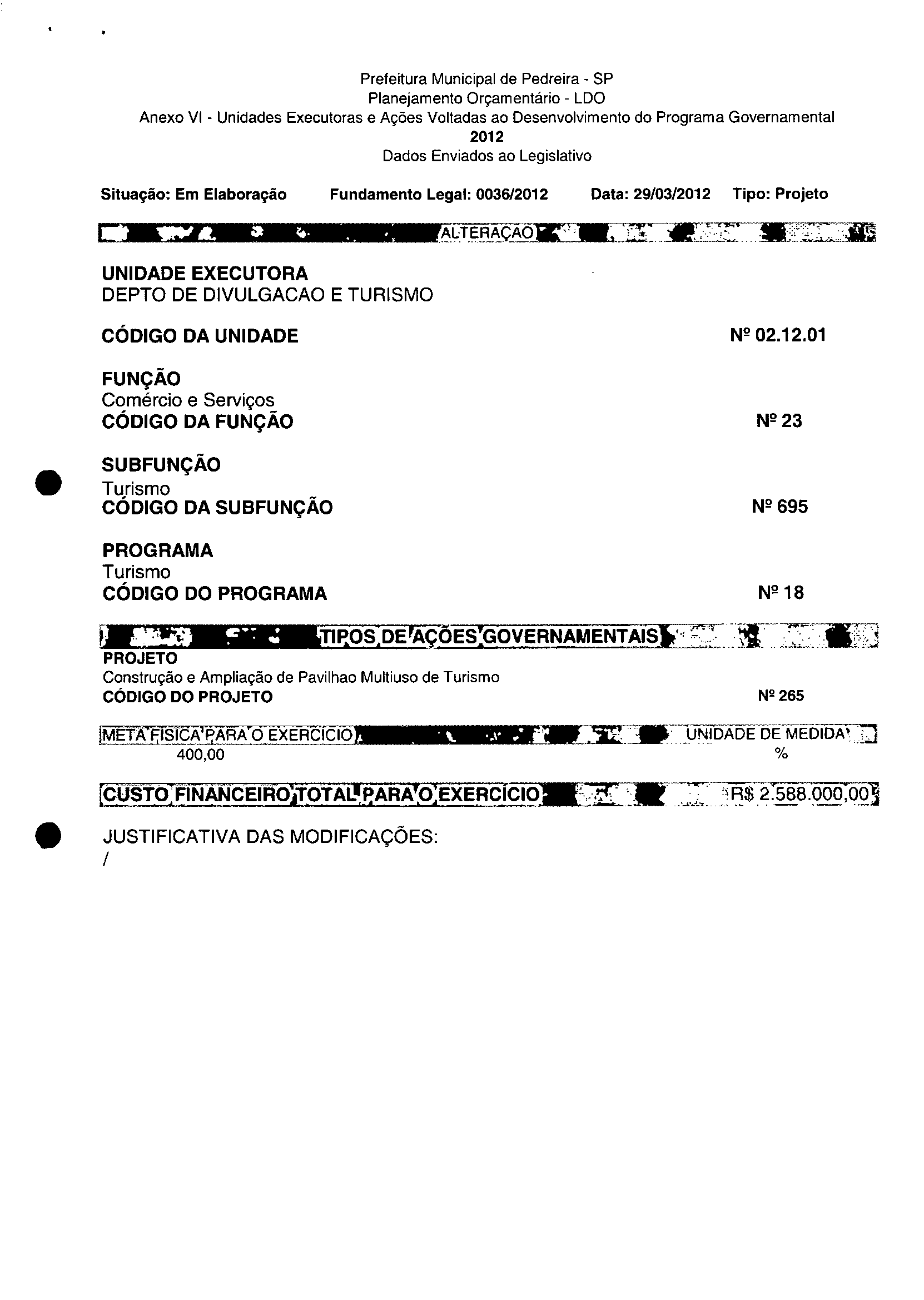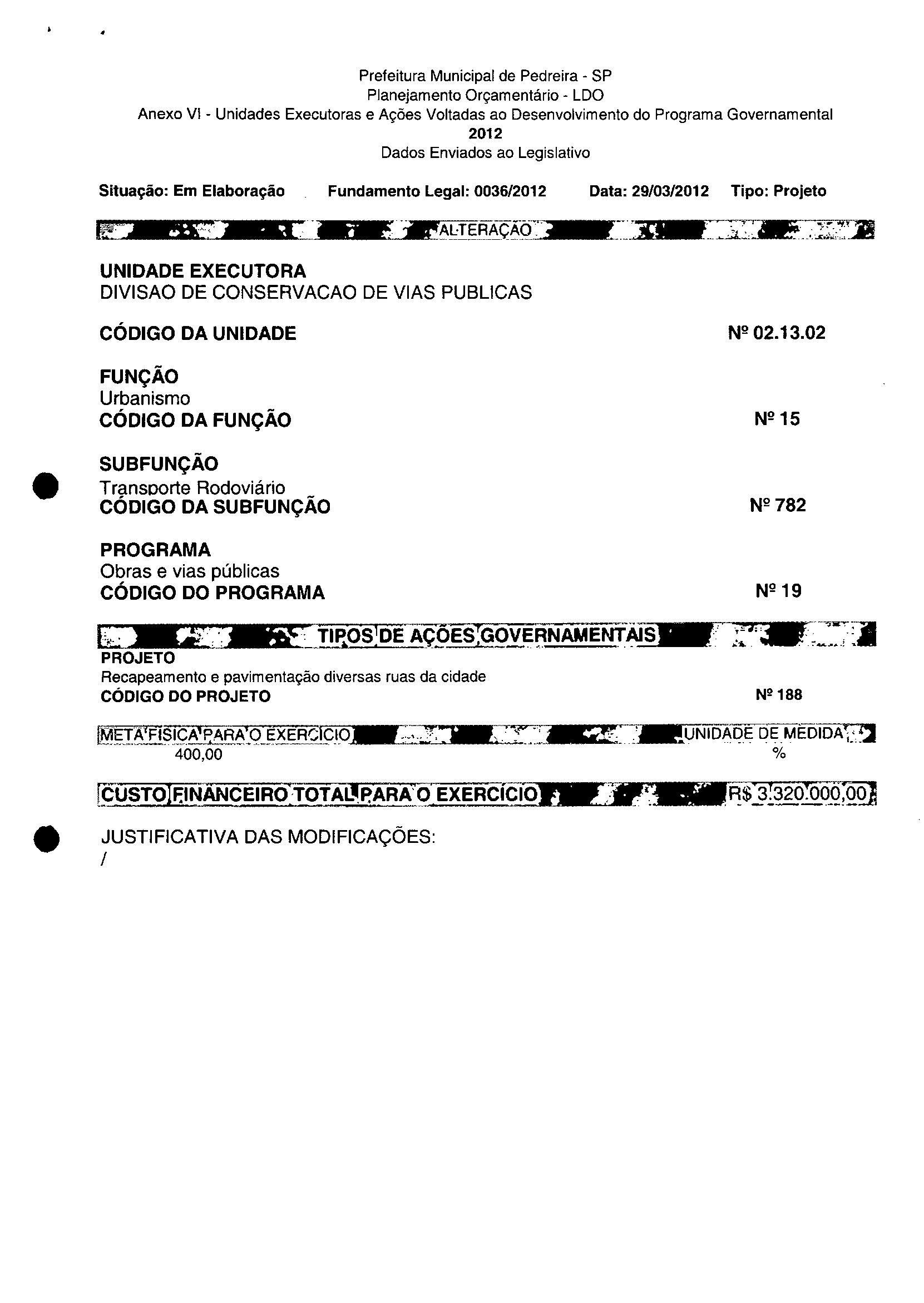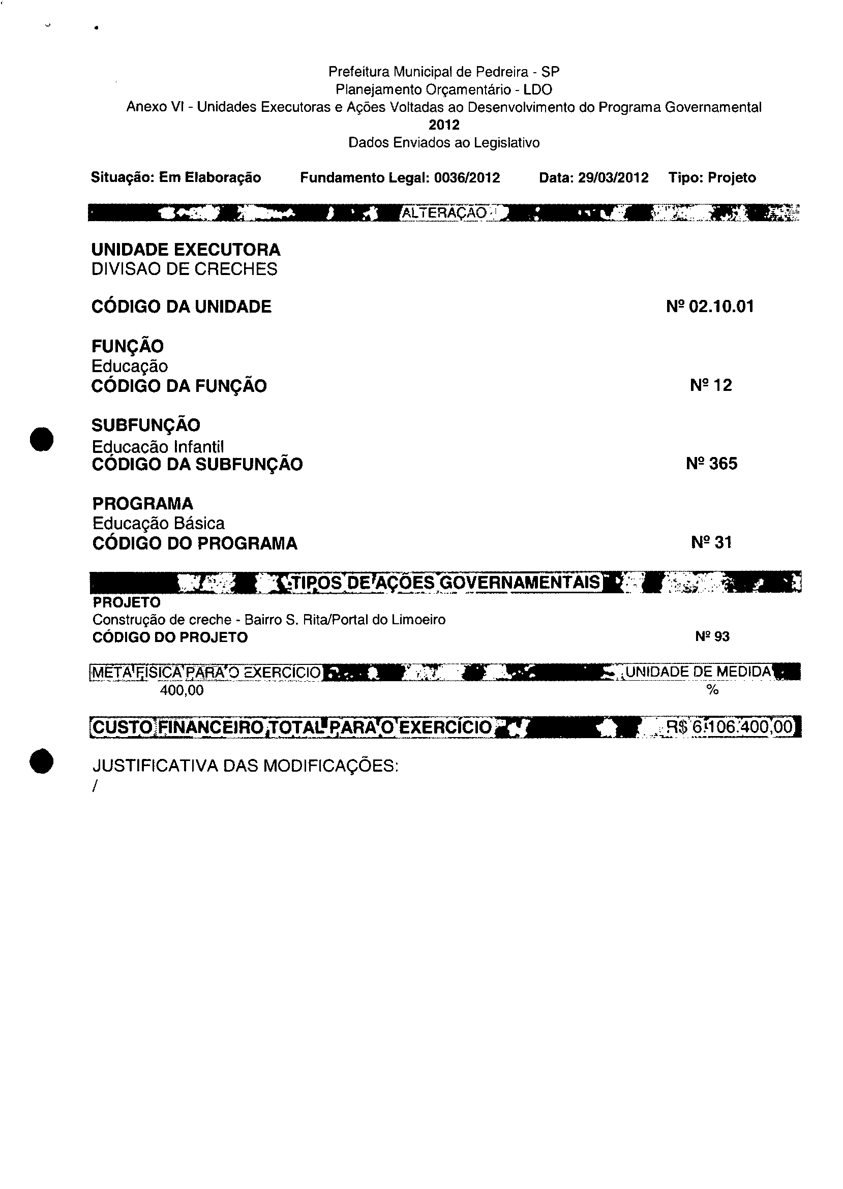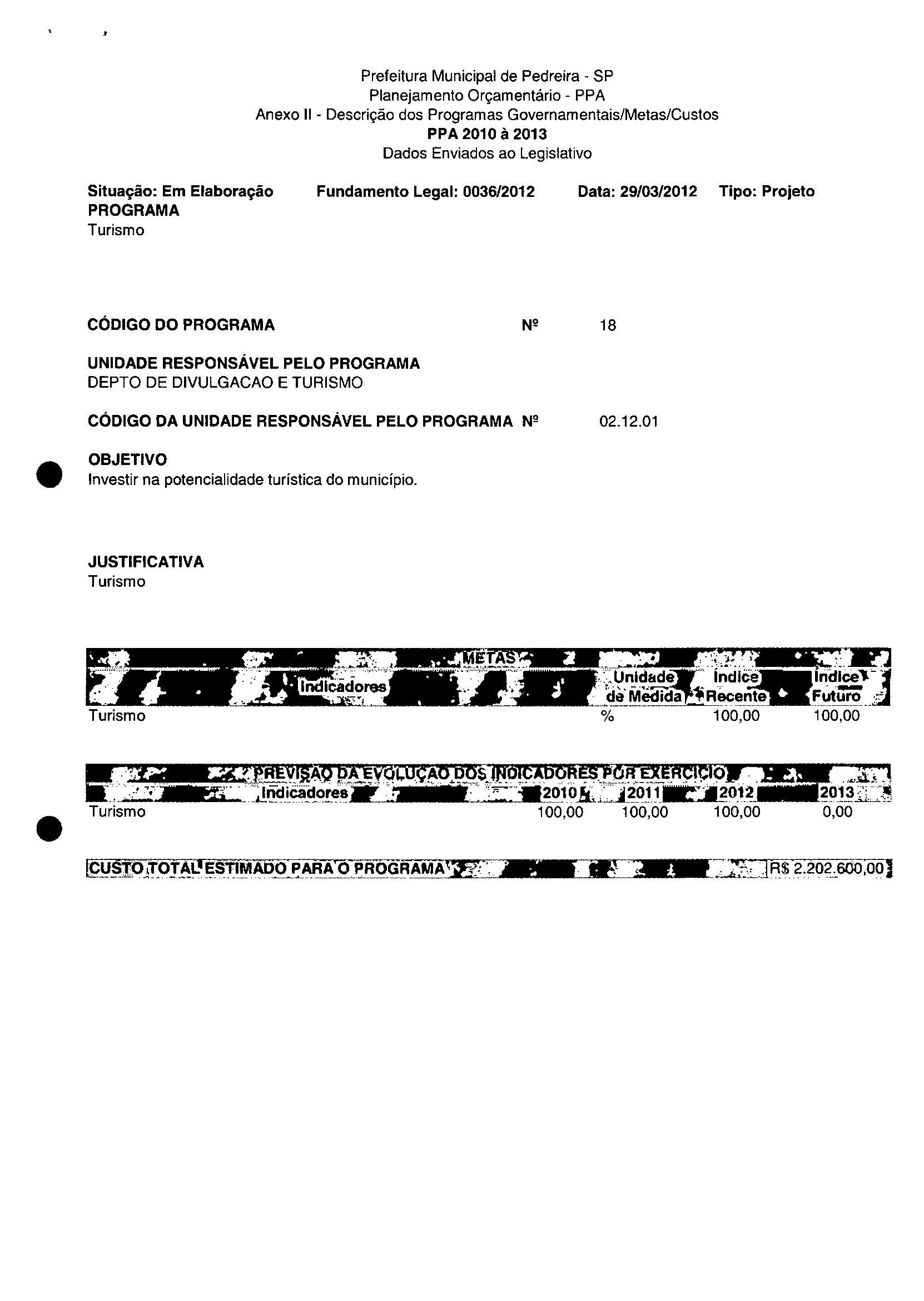 Ementa: Dispõe sobre a alteração dos anexos II e III -da Lei nº 2.977, de 5 de novembro de 2009 -Plano Plurianual para o Quadriénio de 2010/2013 e a alteração dos anexos Ve VI-da Lei nº 3,138, de 27 de junho de 2011 -Lei de Diretrizes Orçamentárias para o exercício de 2012.