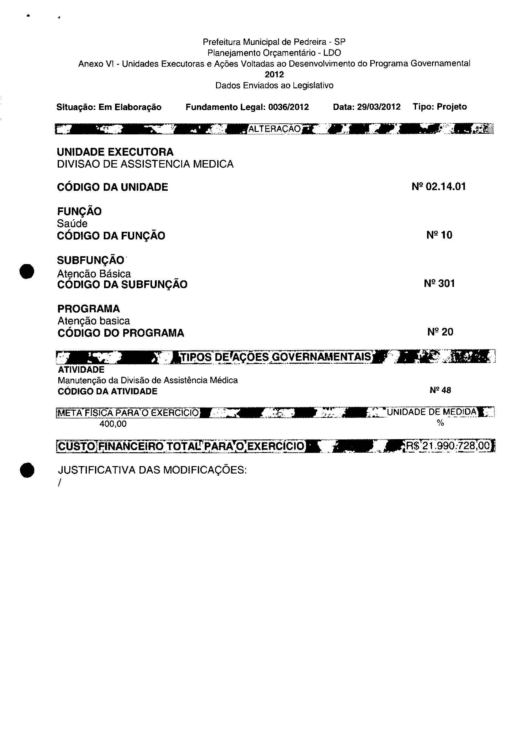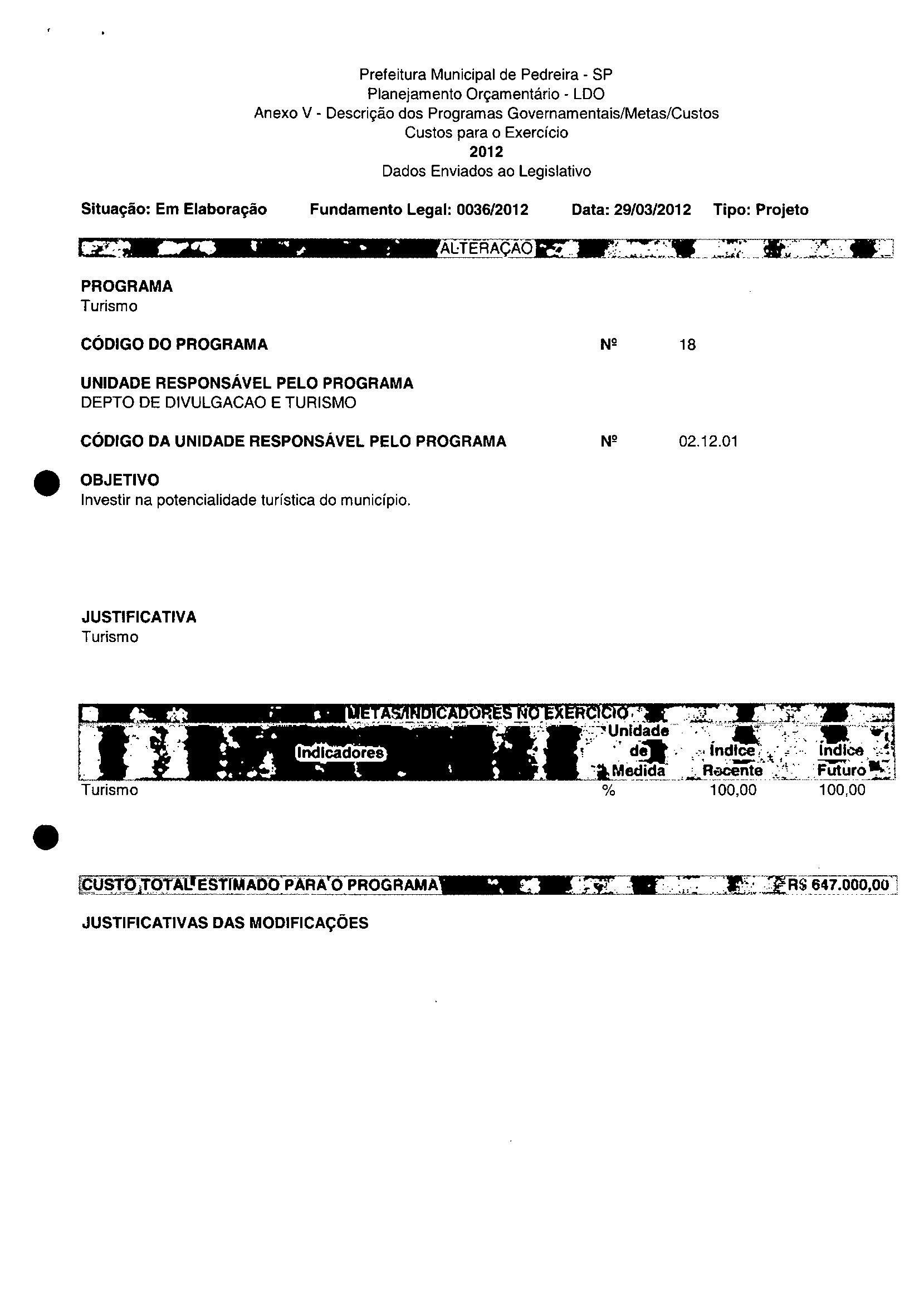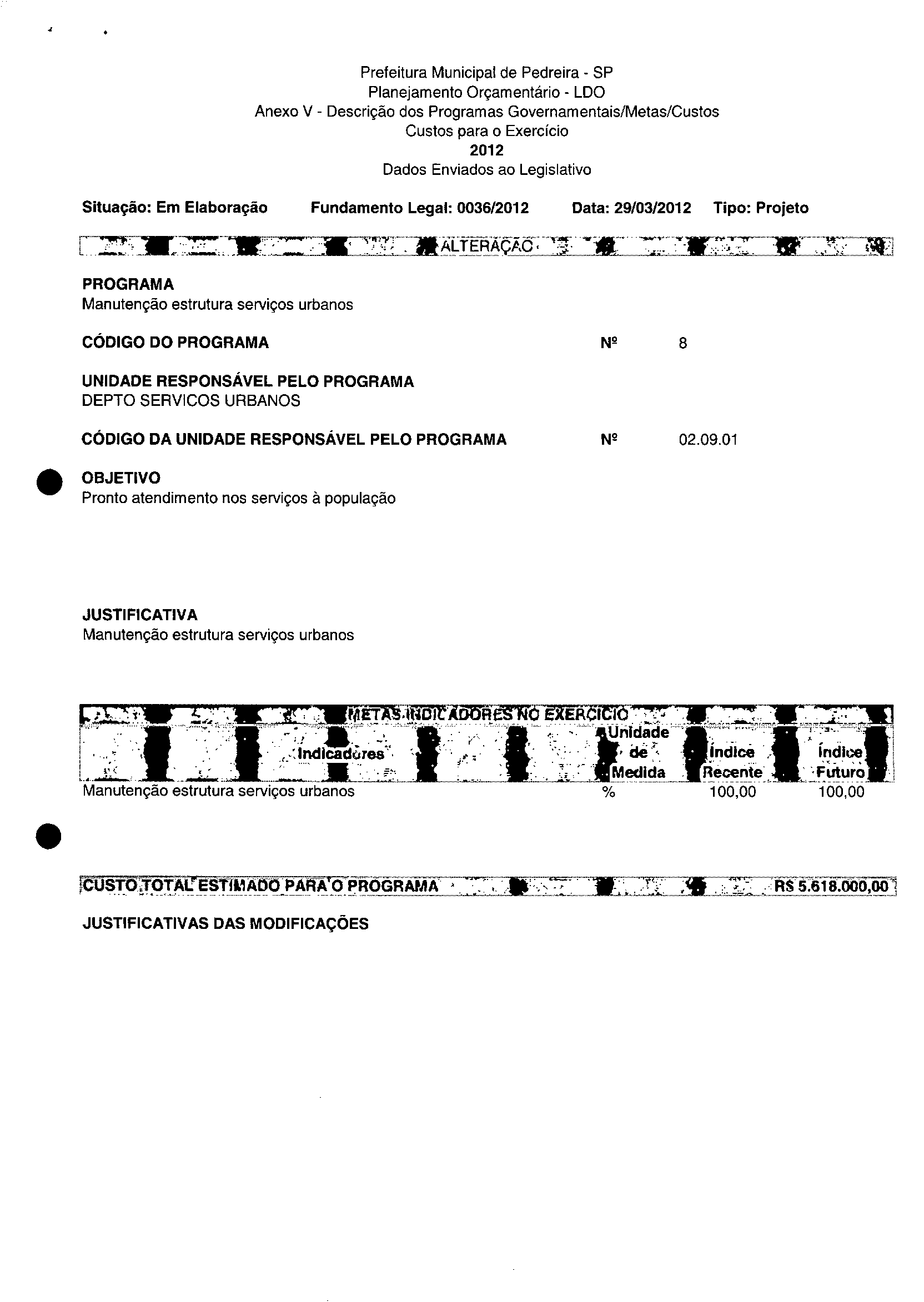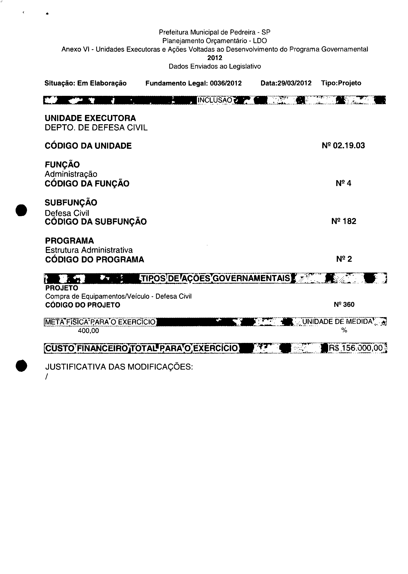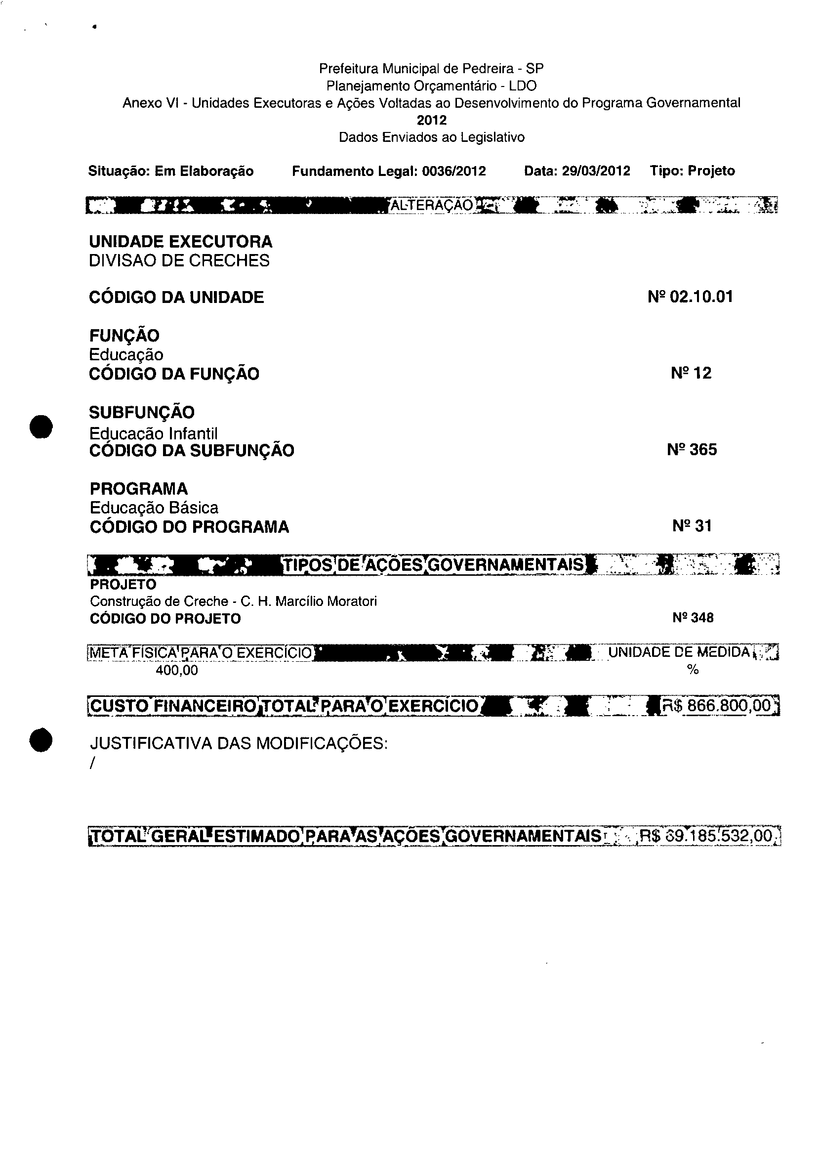 Ementa: Dispõe sobre a alteração dos anexos II e III -da Lei nº 2.977, de 5 de novembro de 2009 -Plano Plurianual para o Quadriénio de 2010/2013 e a alteração dos anexos Ve VI-da Lei nº 3,138, de 27 de junho de 2011 -Lei de Diretrizes Orçamentárias para o exercício de 2012.