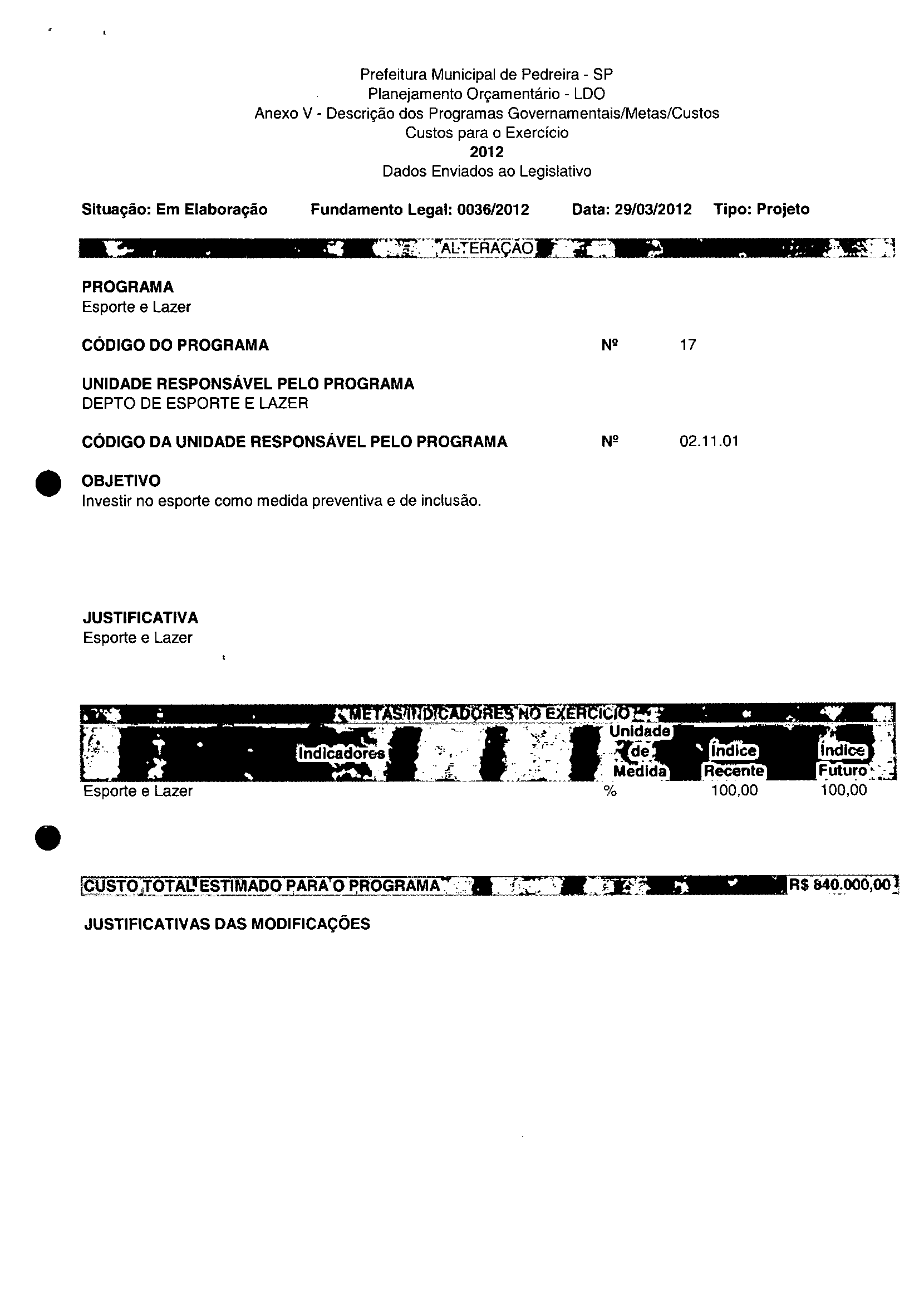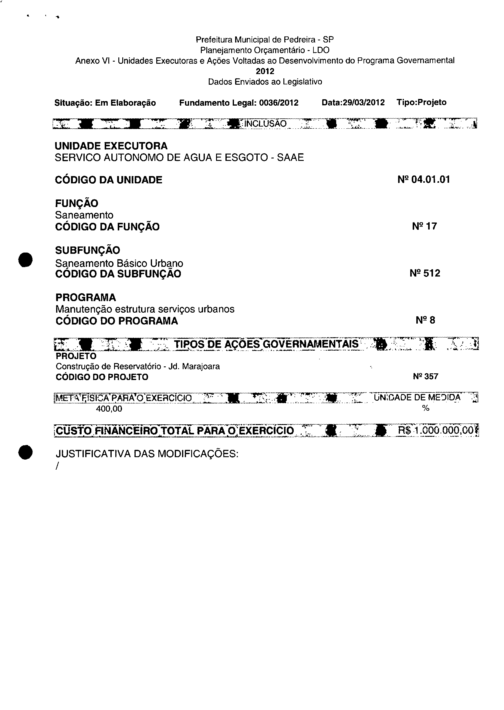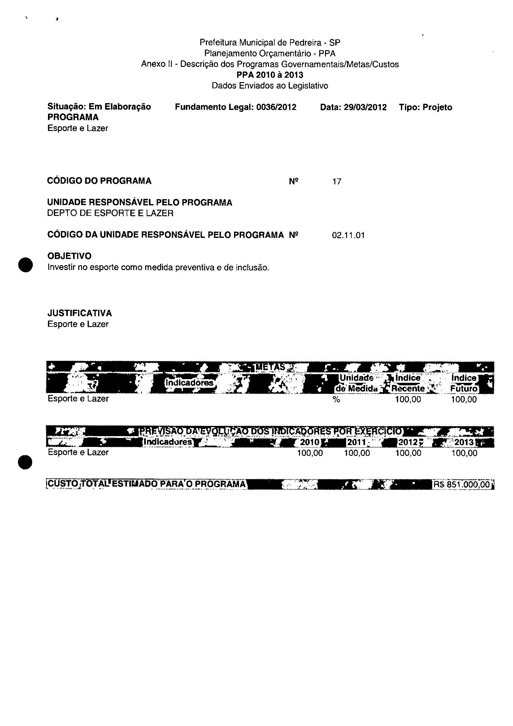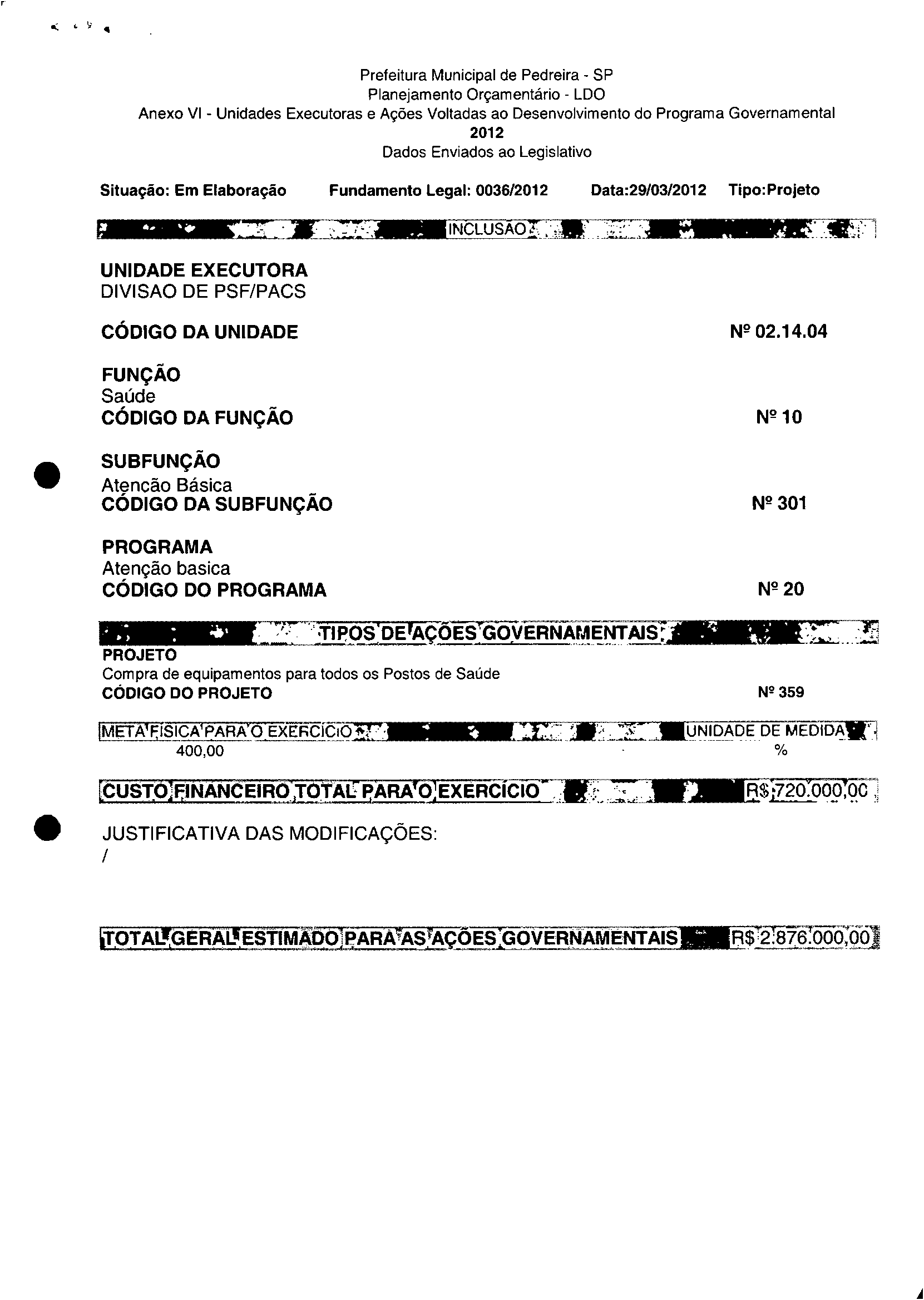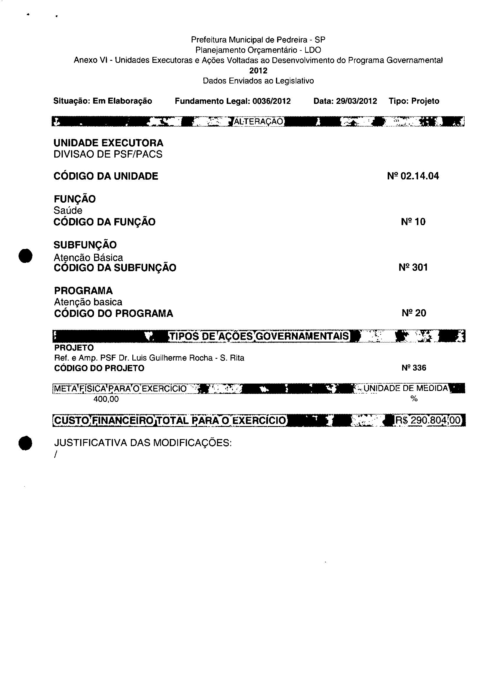 Ementa: Dispõe sobre a alteração dos anexos II e III -da Lei nº 2.977, de 5 de novembro de 2009 -Plano Plurianual para o Quadriénio de 2010/2013 e a alteração dos anexos Ve VI-da Lei nº 3,138, de 27 de junho de 2011 -Lei de Diretrizes Orçamentárias para o exercício de 2012.