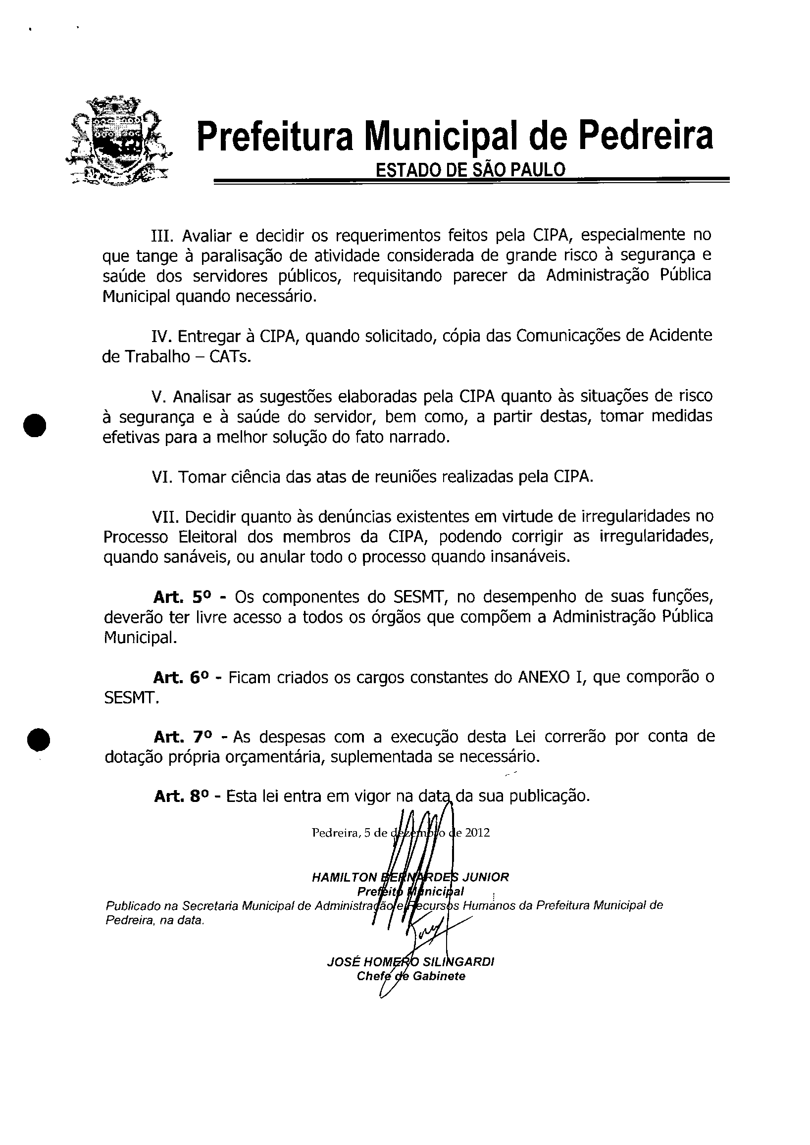Lei Municipal - N° 3299 de 05/12/2012