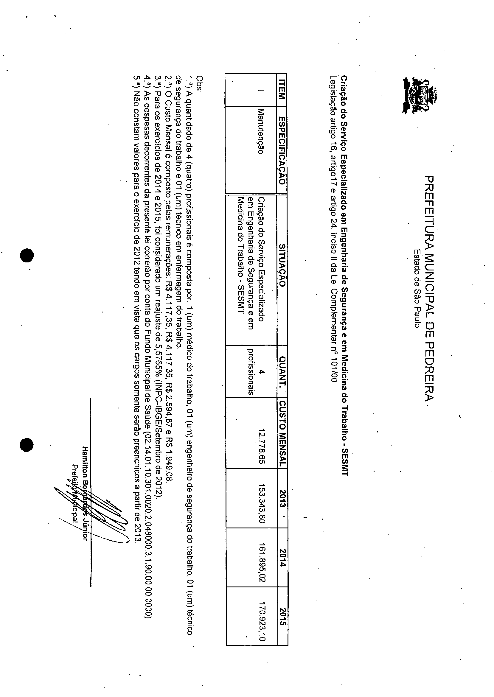 Ementa: Cria o Serviço Especializado em Engenharia de Segurança e em Medicina do Trabalho -SESMT e da outros provimentos.