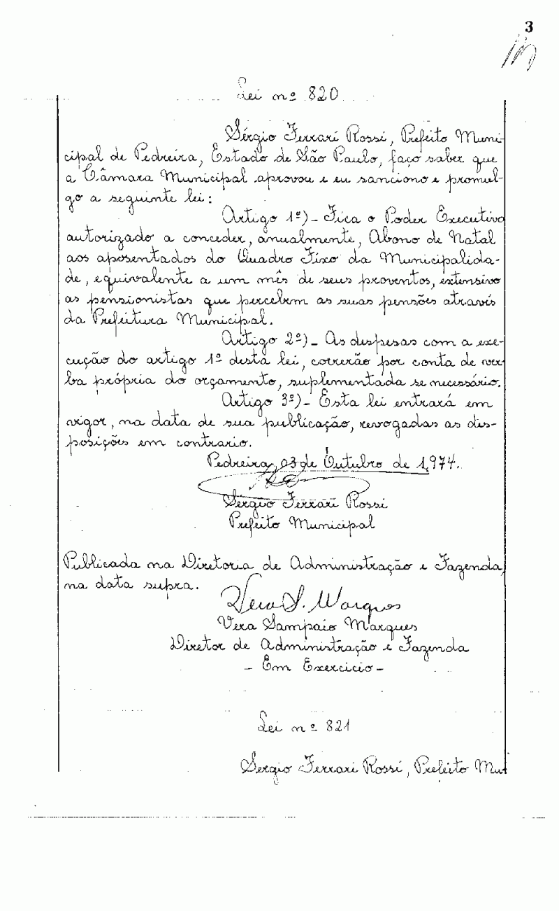 Lei Municipal - N° 820 de 03/10/1974