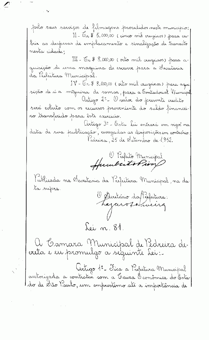 Lei Municipal - N° 81 de 25/09/1952