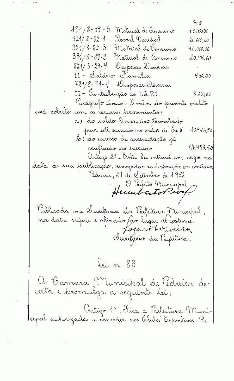 Ementa: Artigo 1º - Fica a Prefeitura Municipal autorizada a conceder no corrente exercício, os seguintes auxílios, já consignados no orçamento vigente.