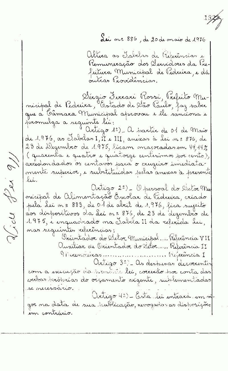 Lei Municipal - N° 886 de 20/05/1976
