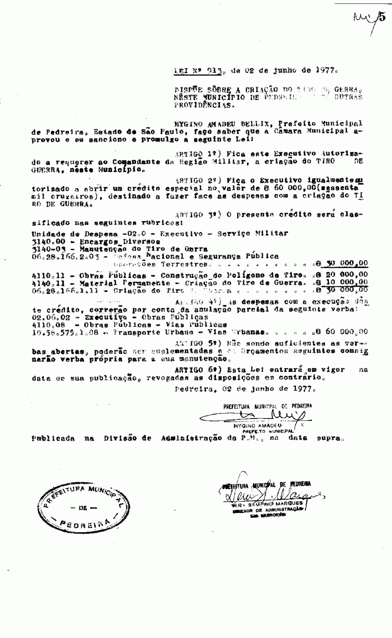 Lei Municipal - N° 913 de 02/06/1977
