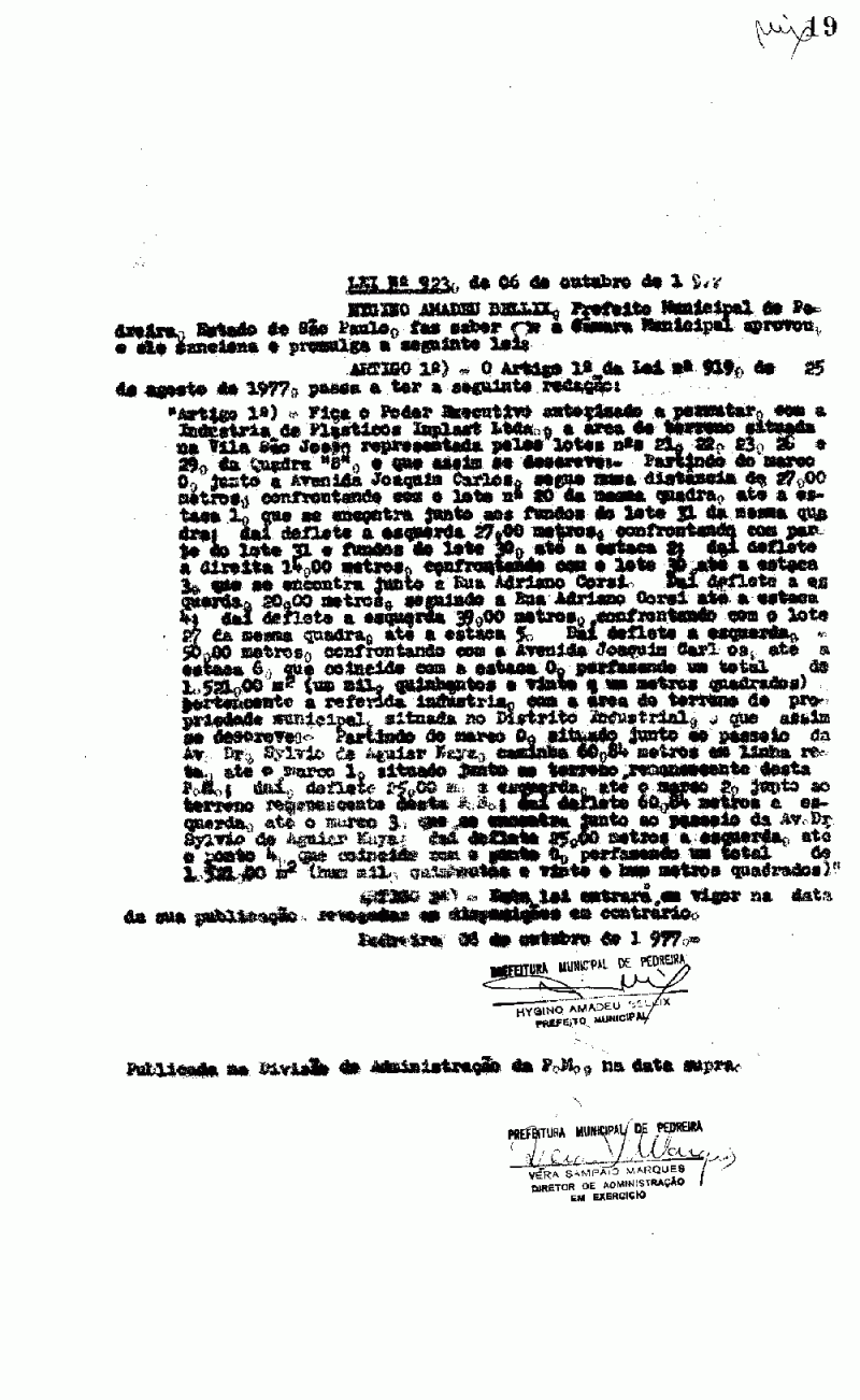 Ementa: Artigo 1º - O artigo 1º da Lei nº 919, de 25 de agosto de 1977, passa a ter a seguinte redação.
