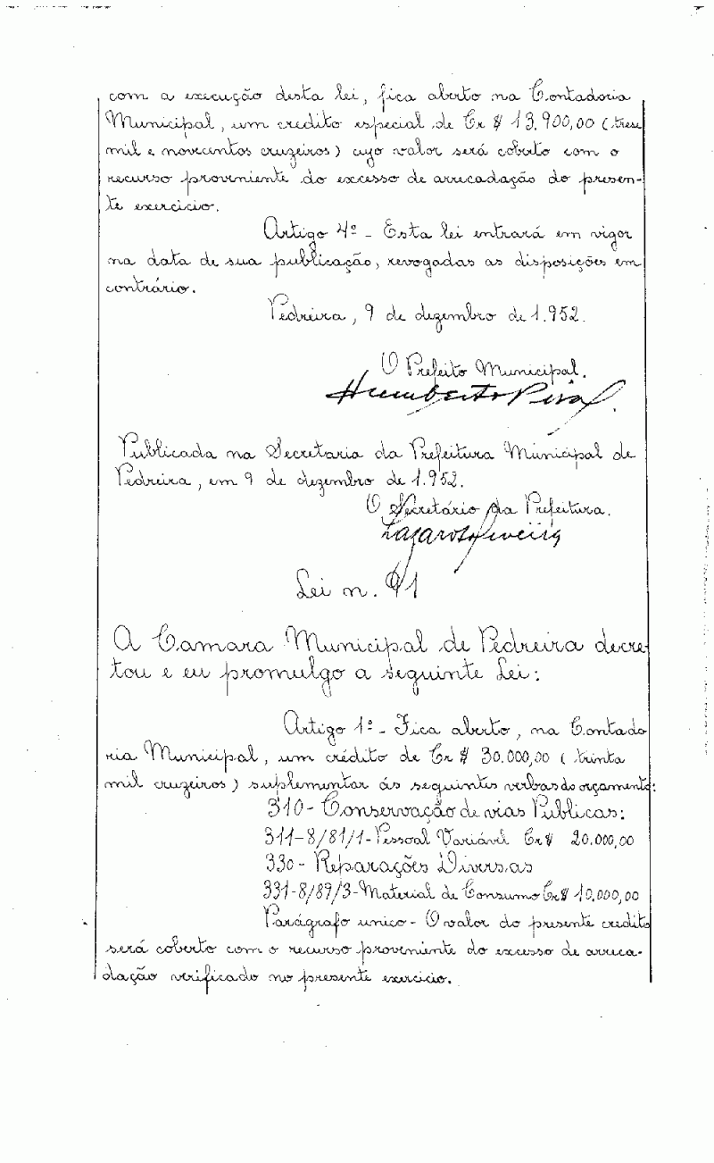 Ementa: Artigo 1º - Fica concedido aos funcionários desta Prefeitura Municipal, do quadro fixo, um abono de "Natal" correspondente a um mês de seus vencimentos.