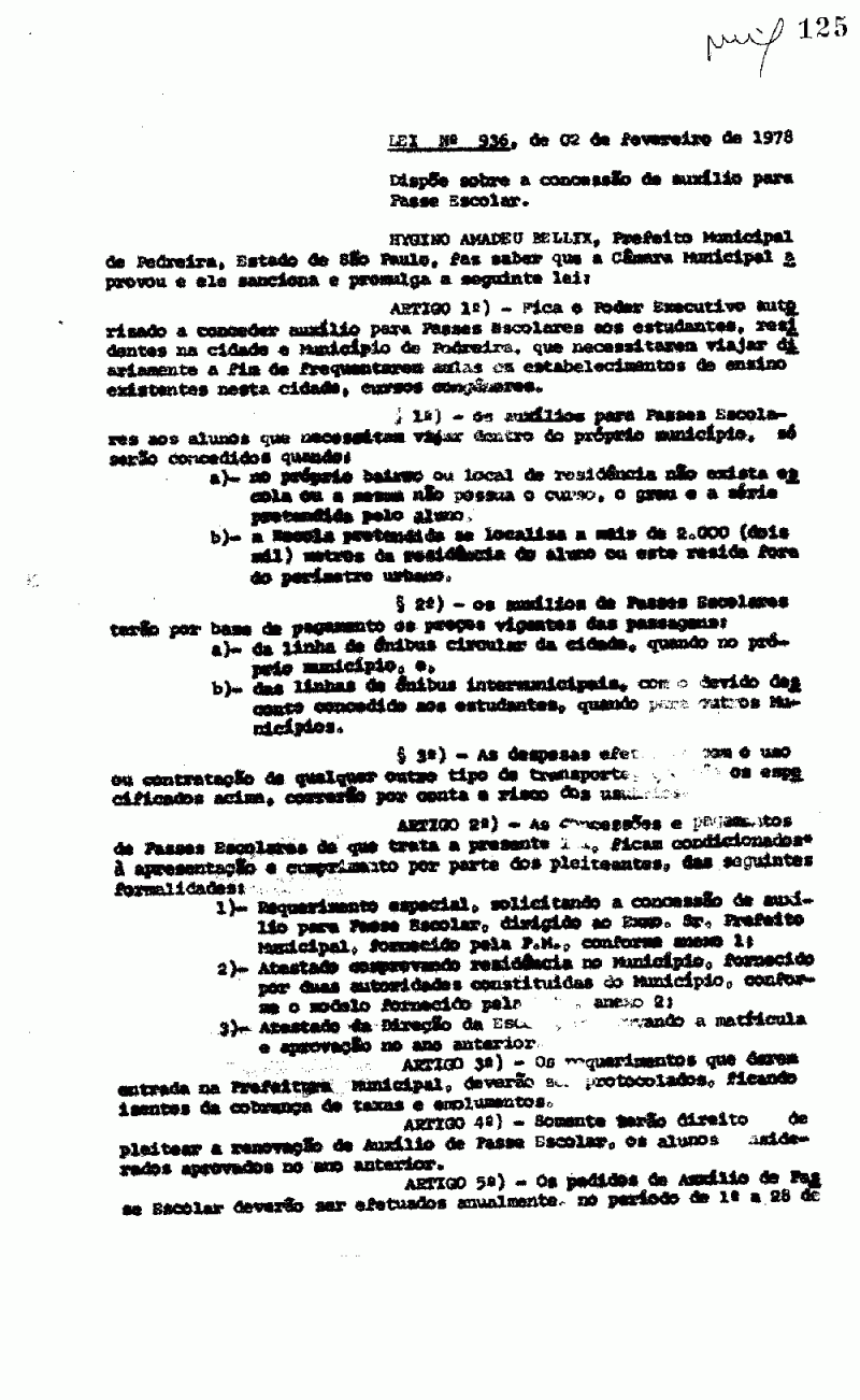 Ementa: Dispõe sobre a concessão de auxílio para Passe Escolar.