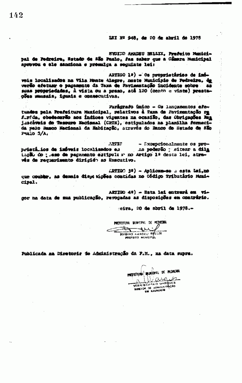 Lei Municipal - N° 948 de 20/04/1978
