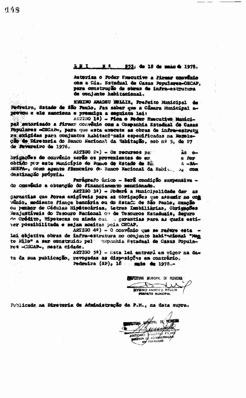 Ementa: Autoriza o Poder Executivo a firmar convênio com a Cia. Estadual de Casas Populares - CECAP, para construção de obras de infra-estrutura de conjunto habitacional.