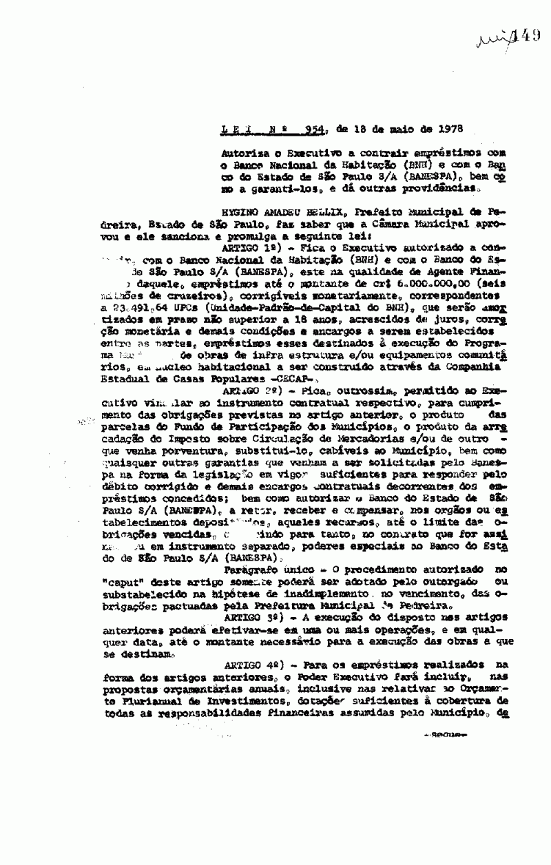 Lei Municipal - N° 954 de 18/05/1978