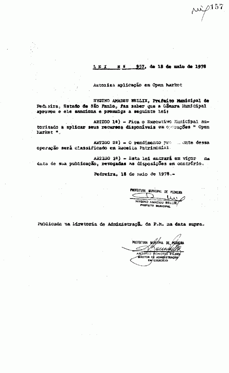 Lei Municipal - N° 957 de 18/05/1978