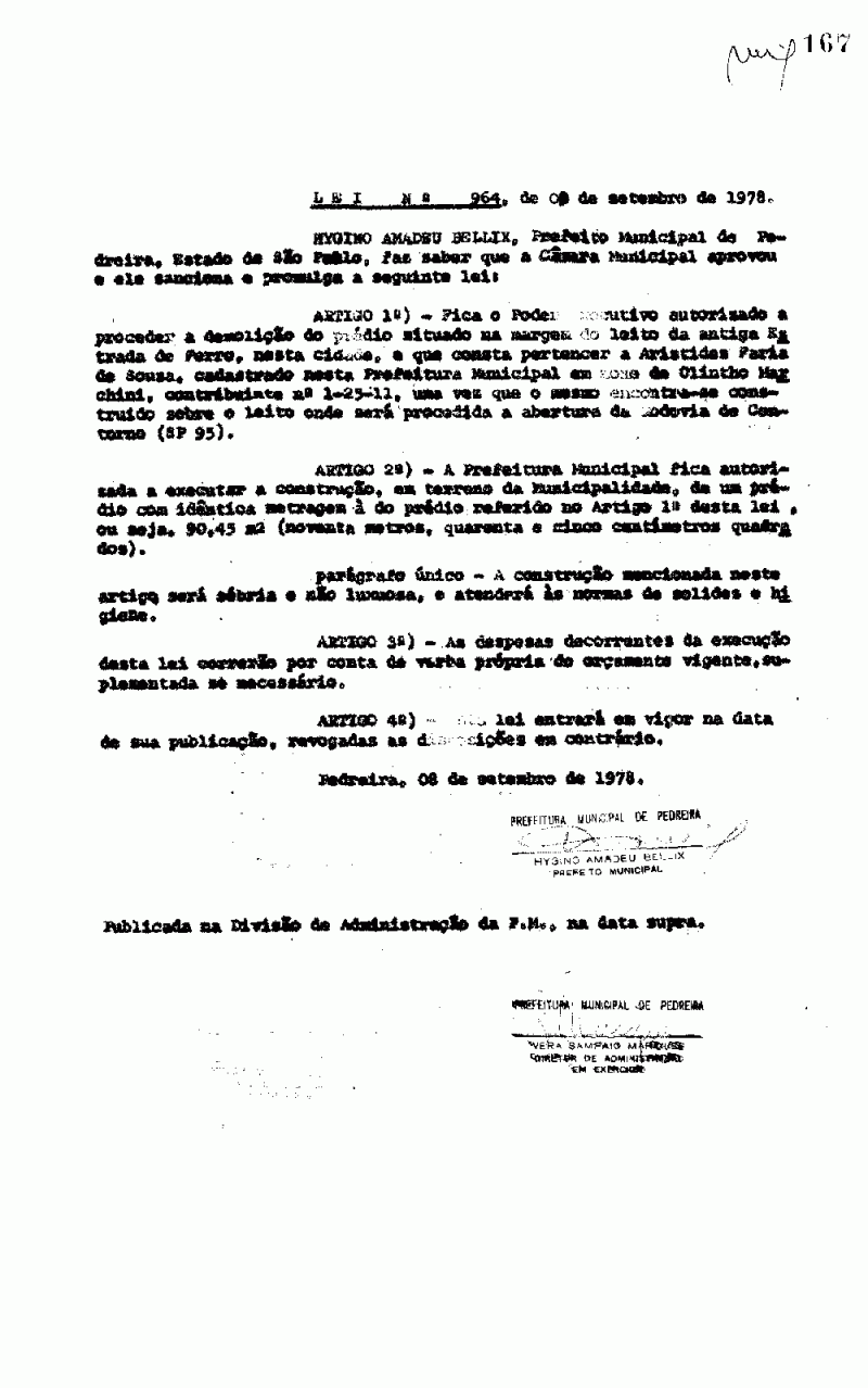Lei Municipal - N° 964 de 09/09/1978