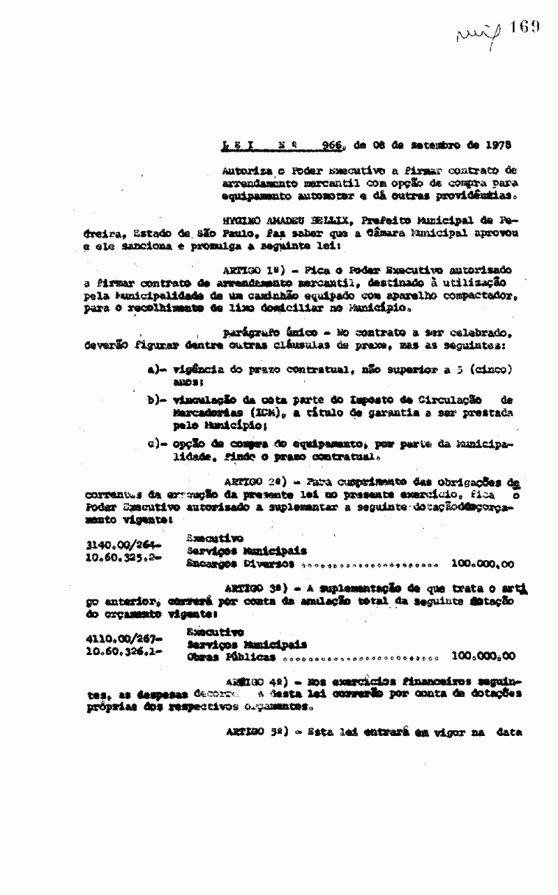 Lei Municipal - N° 966 de 08/09/1978