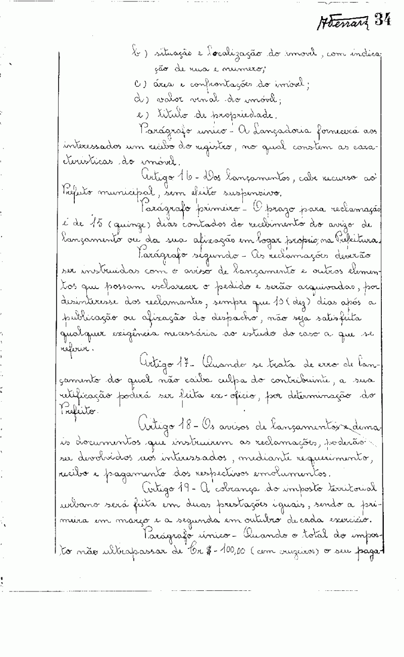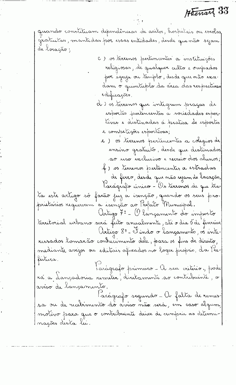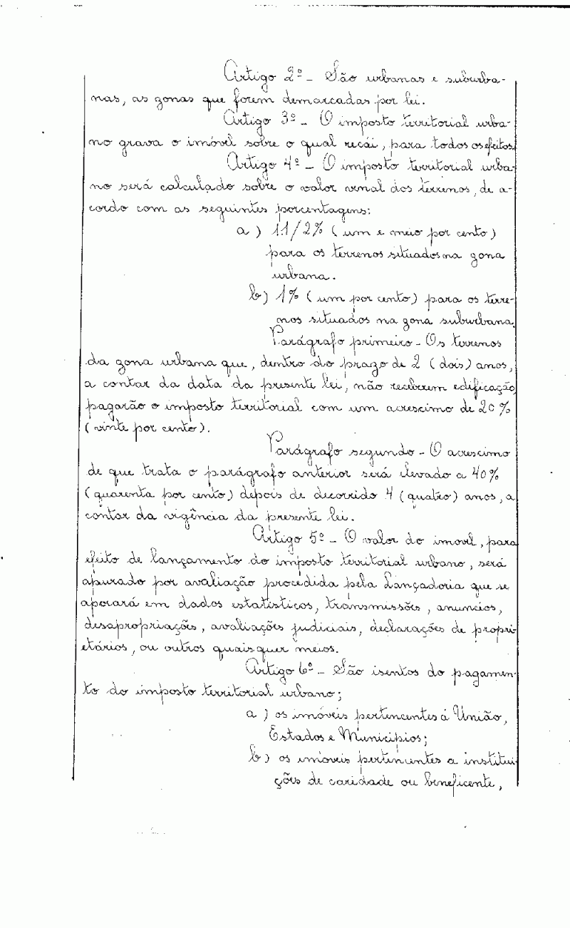 Ementa: Artigo 1º - O imposto territorial urbano, neste município, incide sobre.