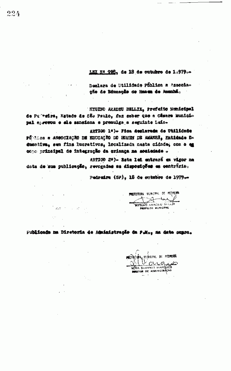 Lei Municipal - N° 998 de 18/10/1979