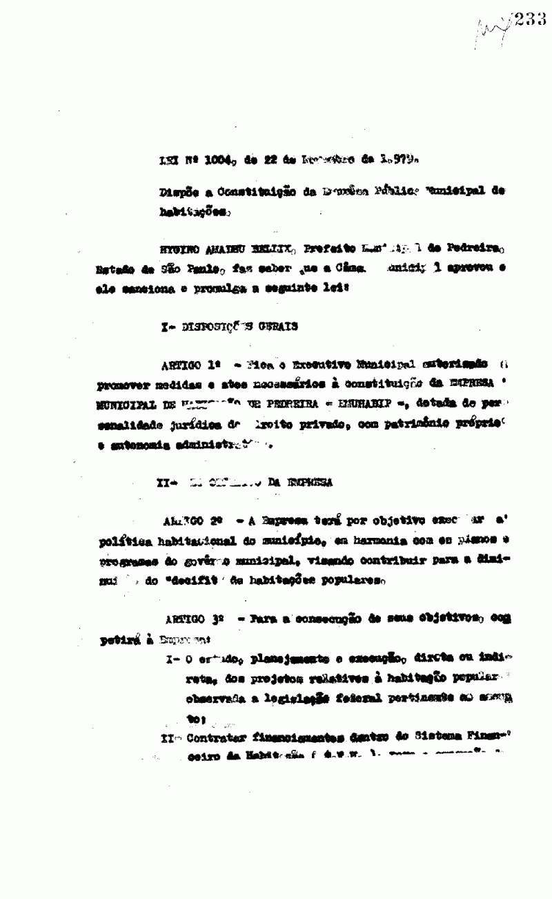 Lei Municipal - N° 1004 de 22/11/1979