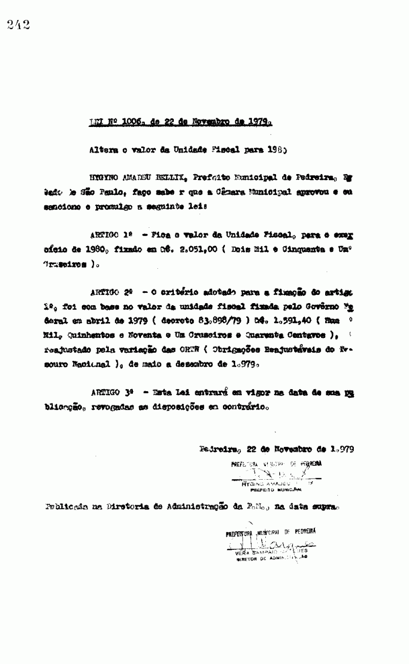 Ementa: Altera o valor da unidade Fiscal para 1980.