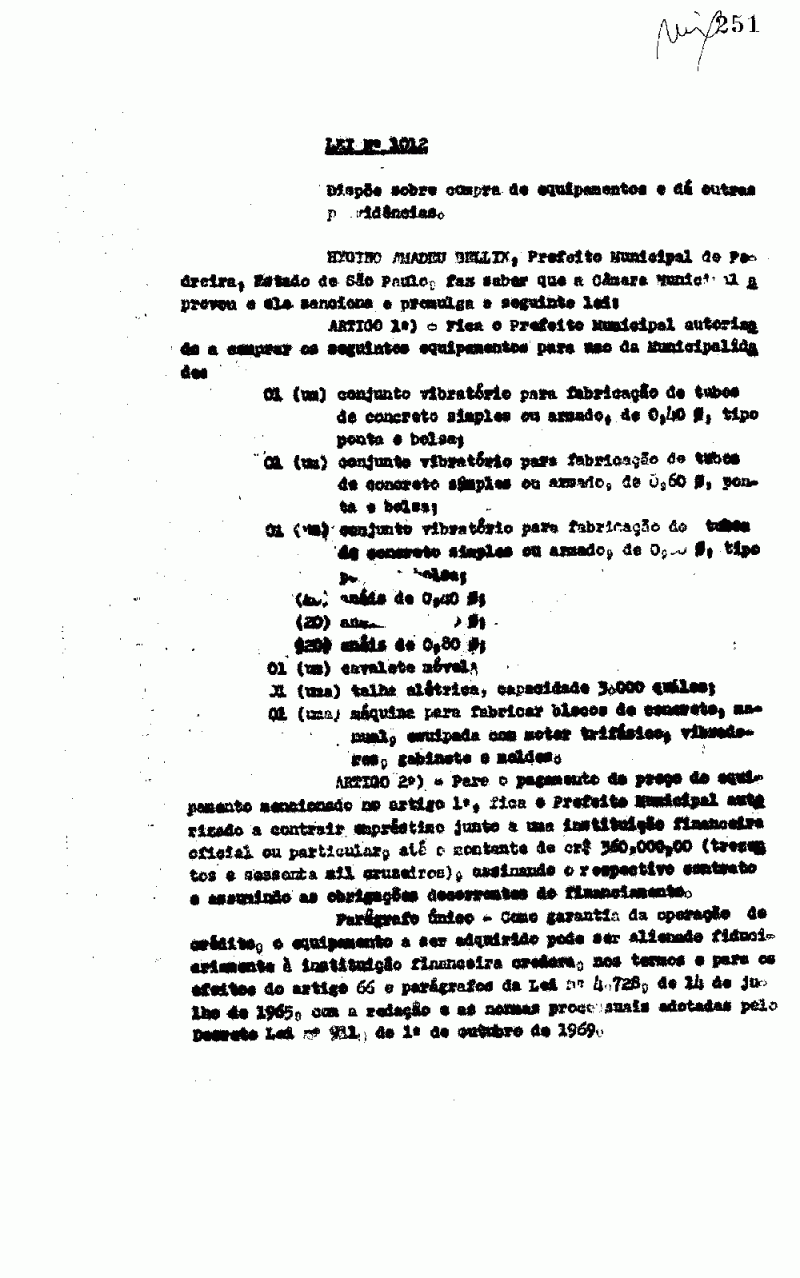 Lei Municipal - N° 1012 de 06/03/1980