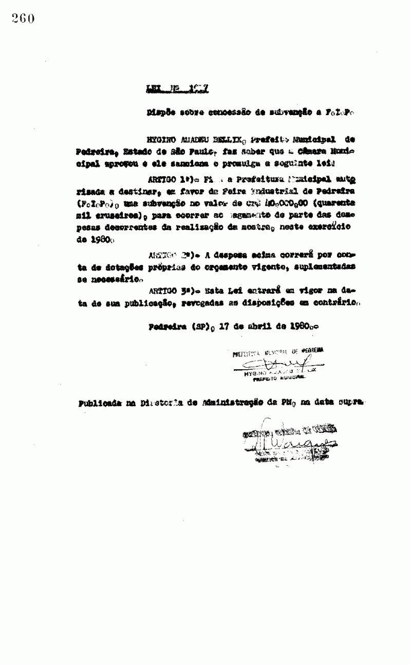 Ementa: Dispõe sobre concessão de subvenção a F.I.P.