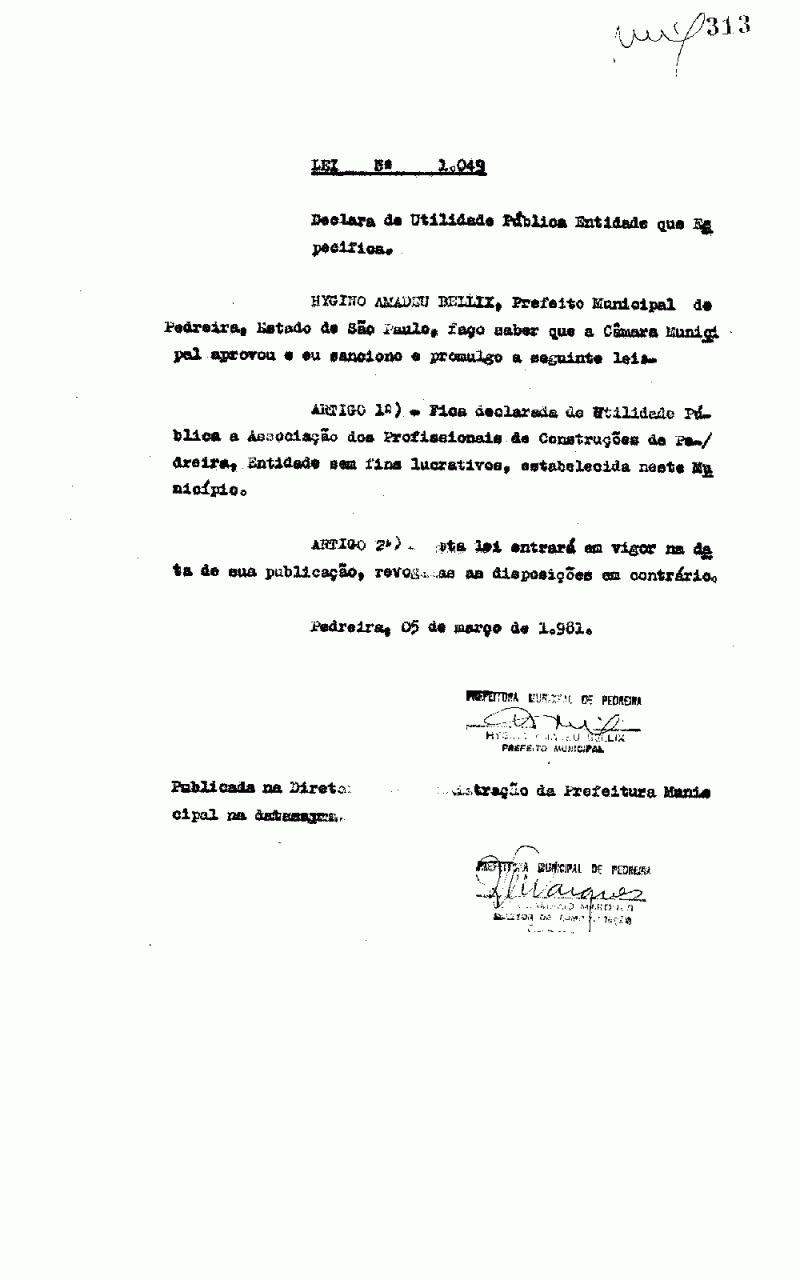 Lei Municipal - N° 1049 de 05/03/1981