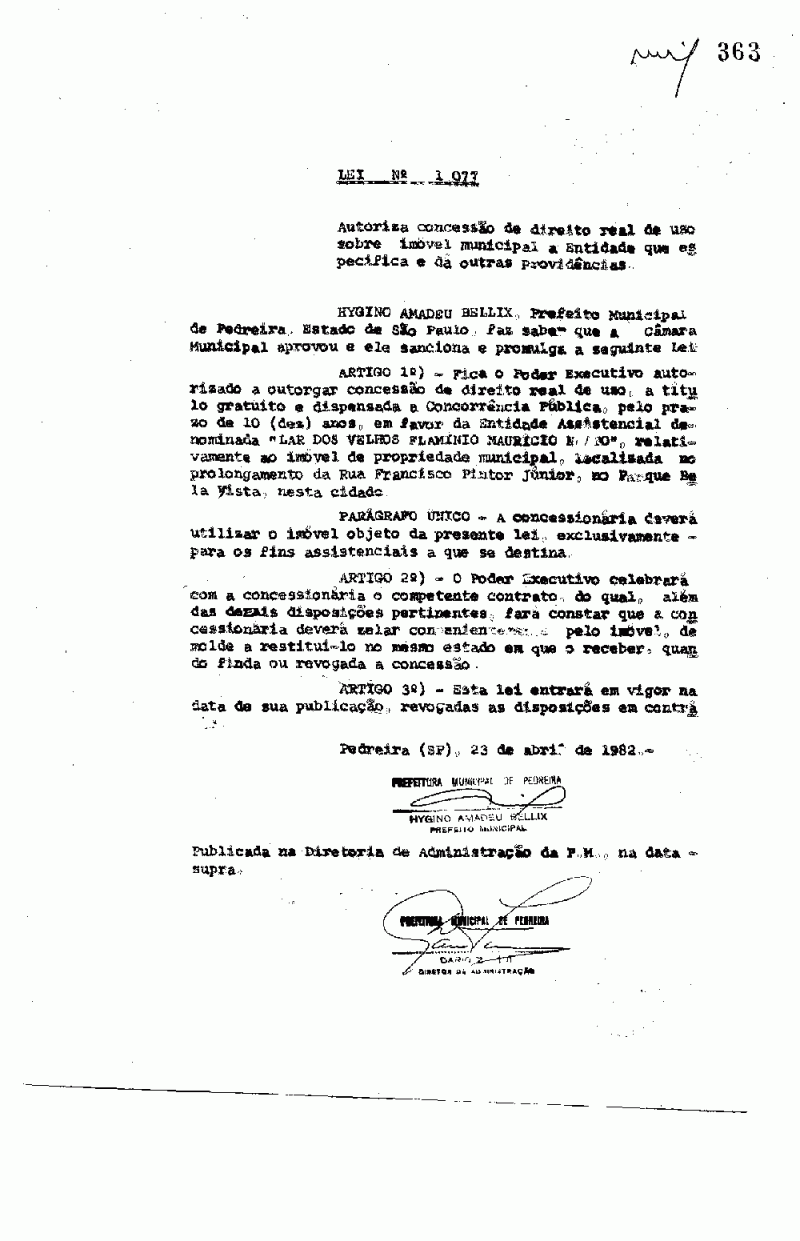 Ementa: Autoriza concessão de direito real de uso sobre imóvel municipal a Entidade que especifica e dá outras providências.