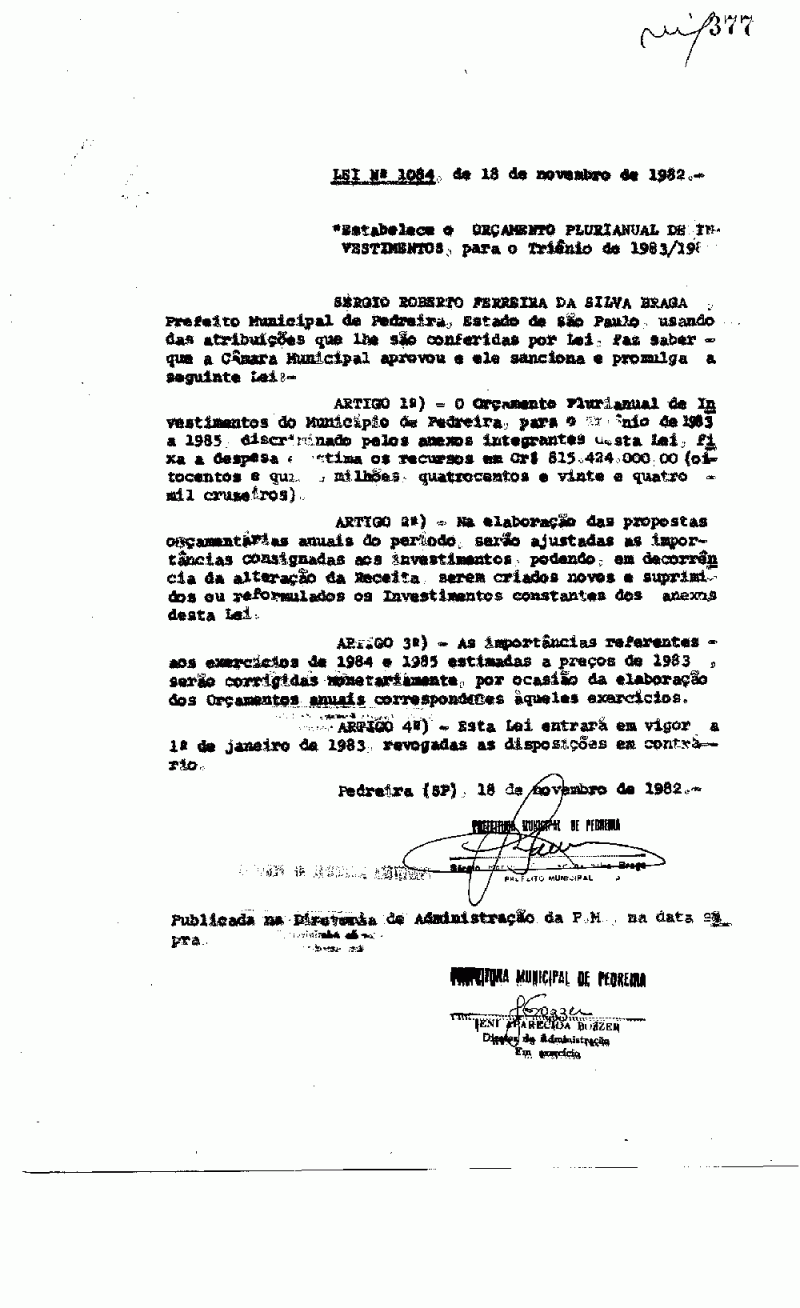 Lei Municipal - N° 1084 de 18/11/1982