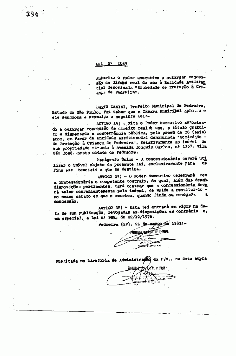 Lei Municipal - N° 1087 de 21/03/1983