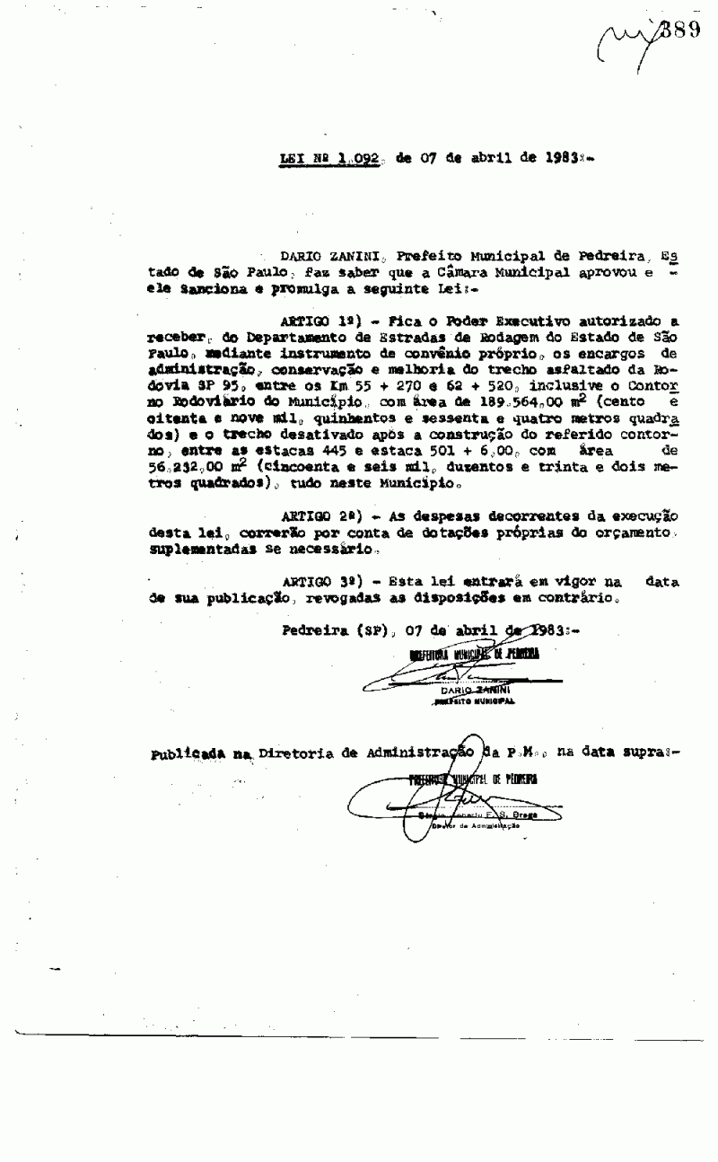 Lei Municipal - N° 1092 de 07/04/1983