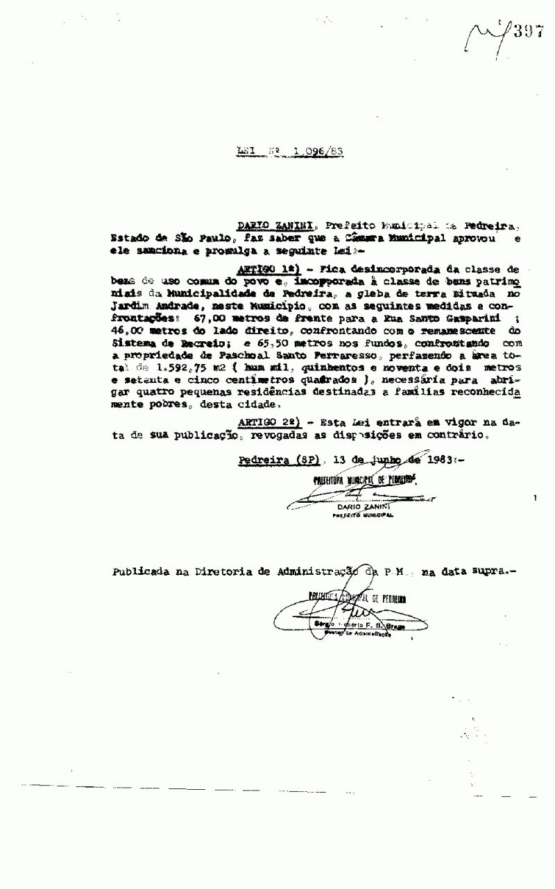 Lei Municipal - N° 1096 de 13/06/1983