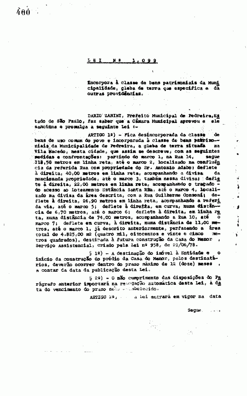 Ementa: Incorpora à classe de bens patrimoniais da Municipalidade, gleba de terras que especifica e dá outras providências.