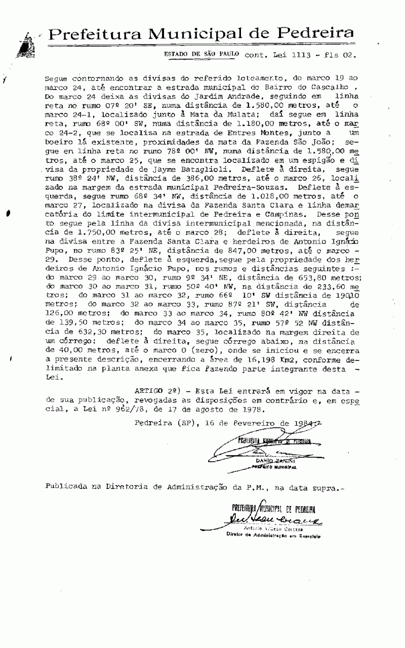 Lei Municipal - N° 1113 de 29/12/1983