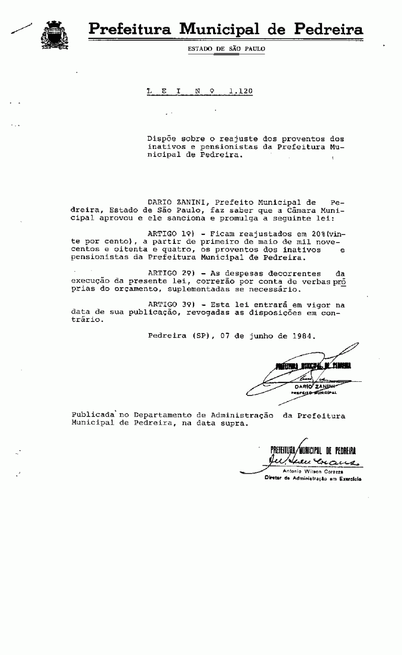 Ementa: Dispõe sobre o reajuste dos proventos dos inativos e pensionistas da Prefeitura Municipal de Pedreira.