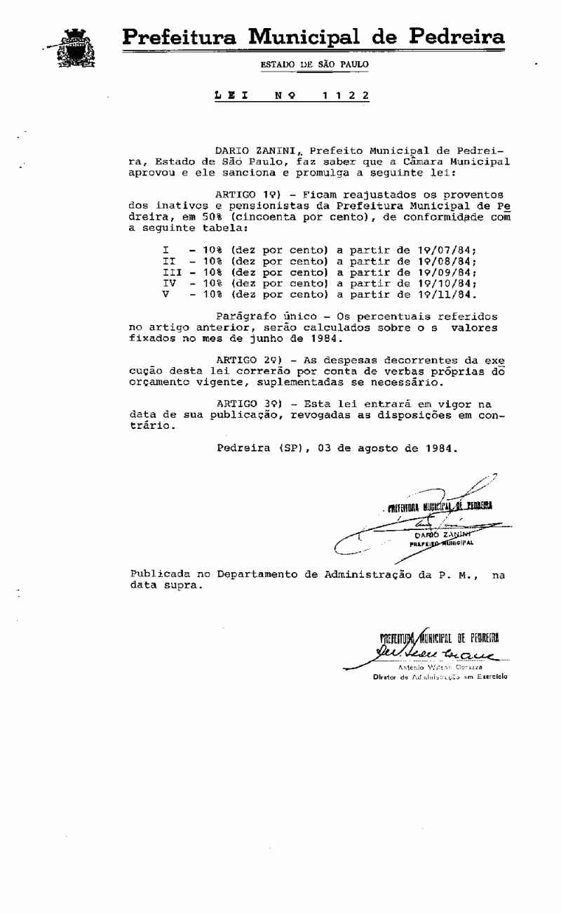 Lei Municipal - N° 1122 de 03/08/1984