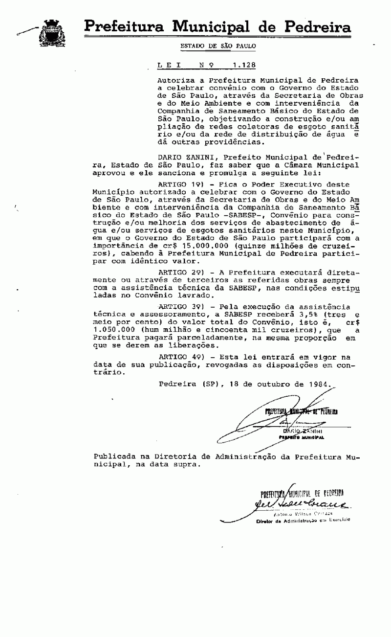 Lei Municipal - N° 1128 de 18/10/1984