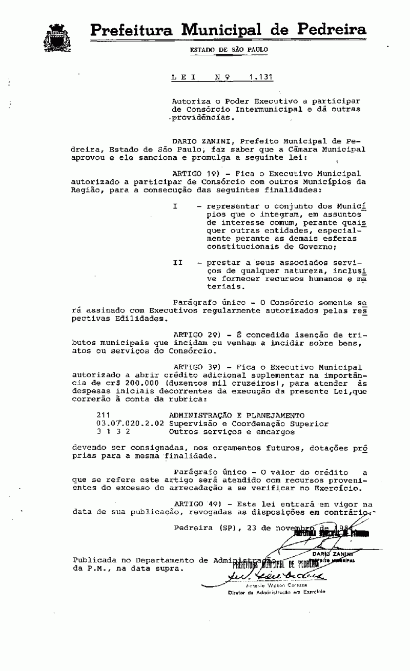 Ementa: Autoriza o Poder Executivo a participar de Consórcio Intermunicipal e dá outras providências.