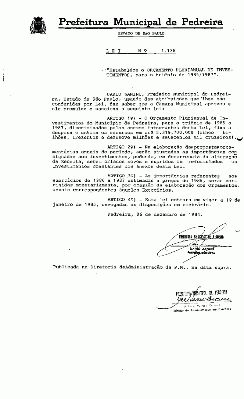 Ementa: Estabelece o Orçamento Plurianual de Investimentos, para o triênio de 1985/1987.