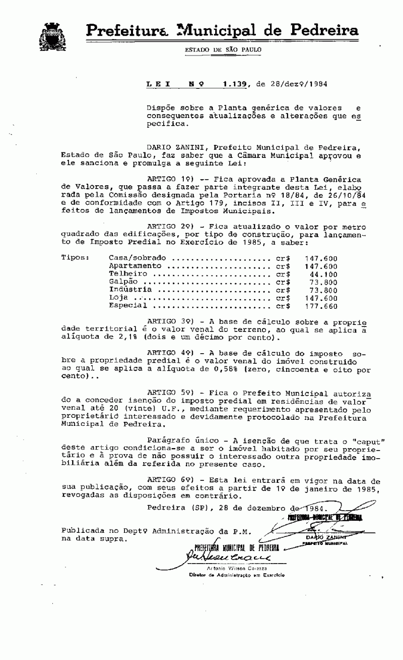 Ementa: Dispõe sobre a Planta Genérica de Valores e consequentes atualizações e alterações que especifica.