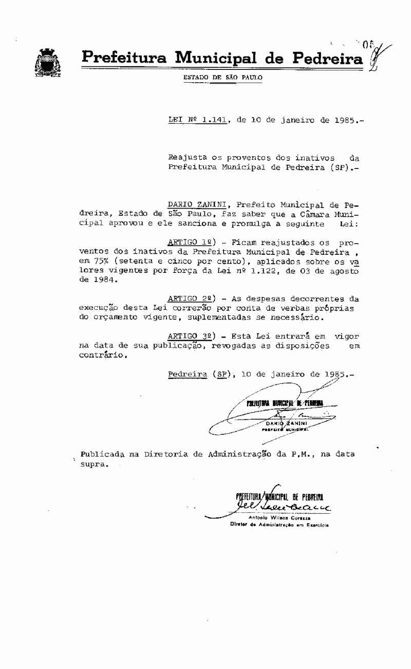 Lei Municipal - N° 1141 de 10/01/1985