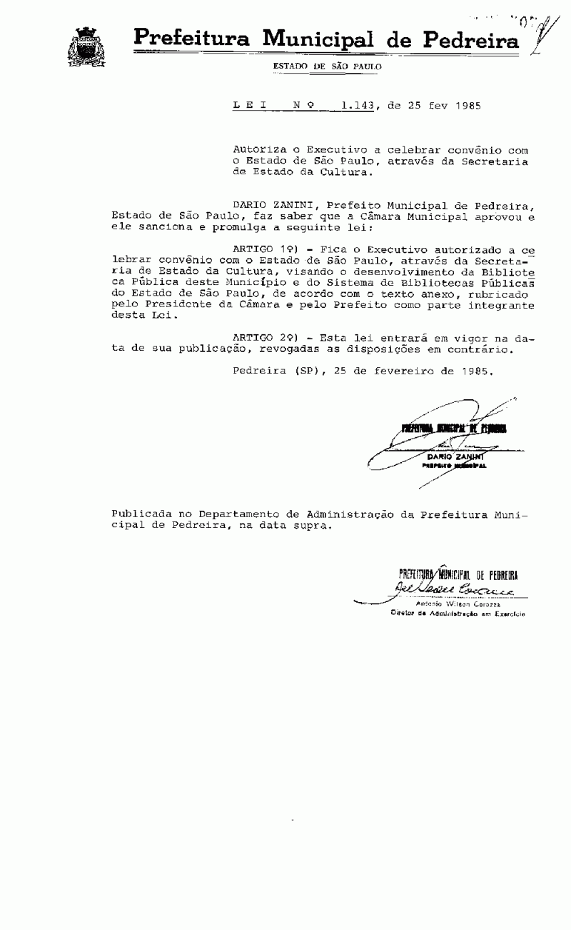 Lei Municipal - N° 1143 de 25/02/1985