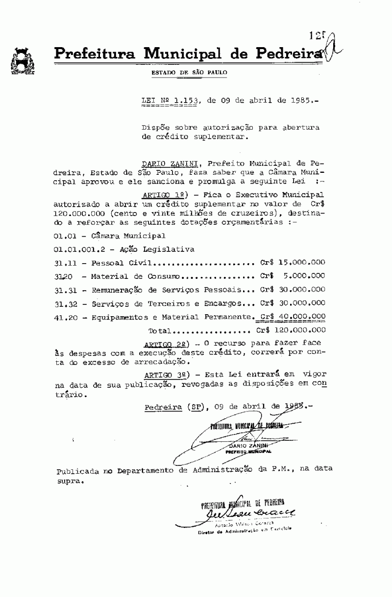 Ementa: Dispõe sobre autorização para abertura de crédito suplementar.