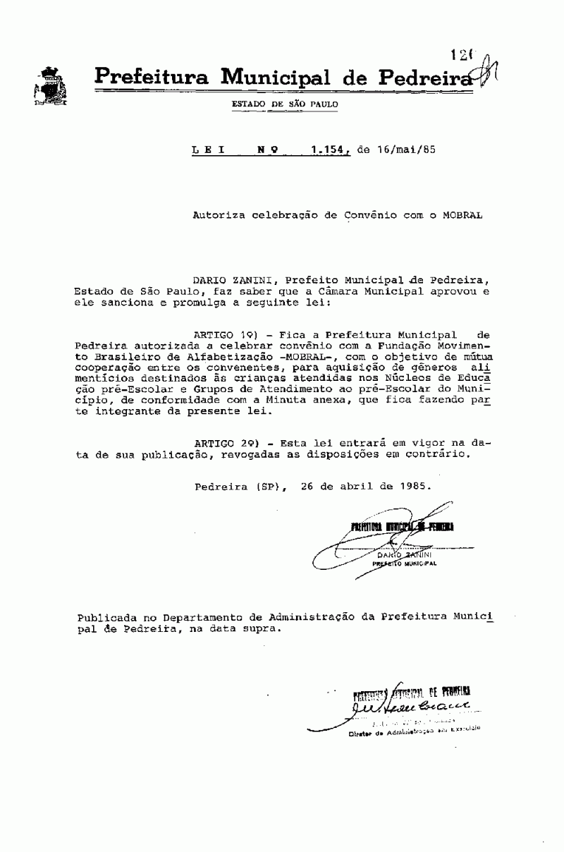Ementa: Autoriza celebração de convênio com o MOBRAL.