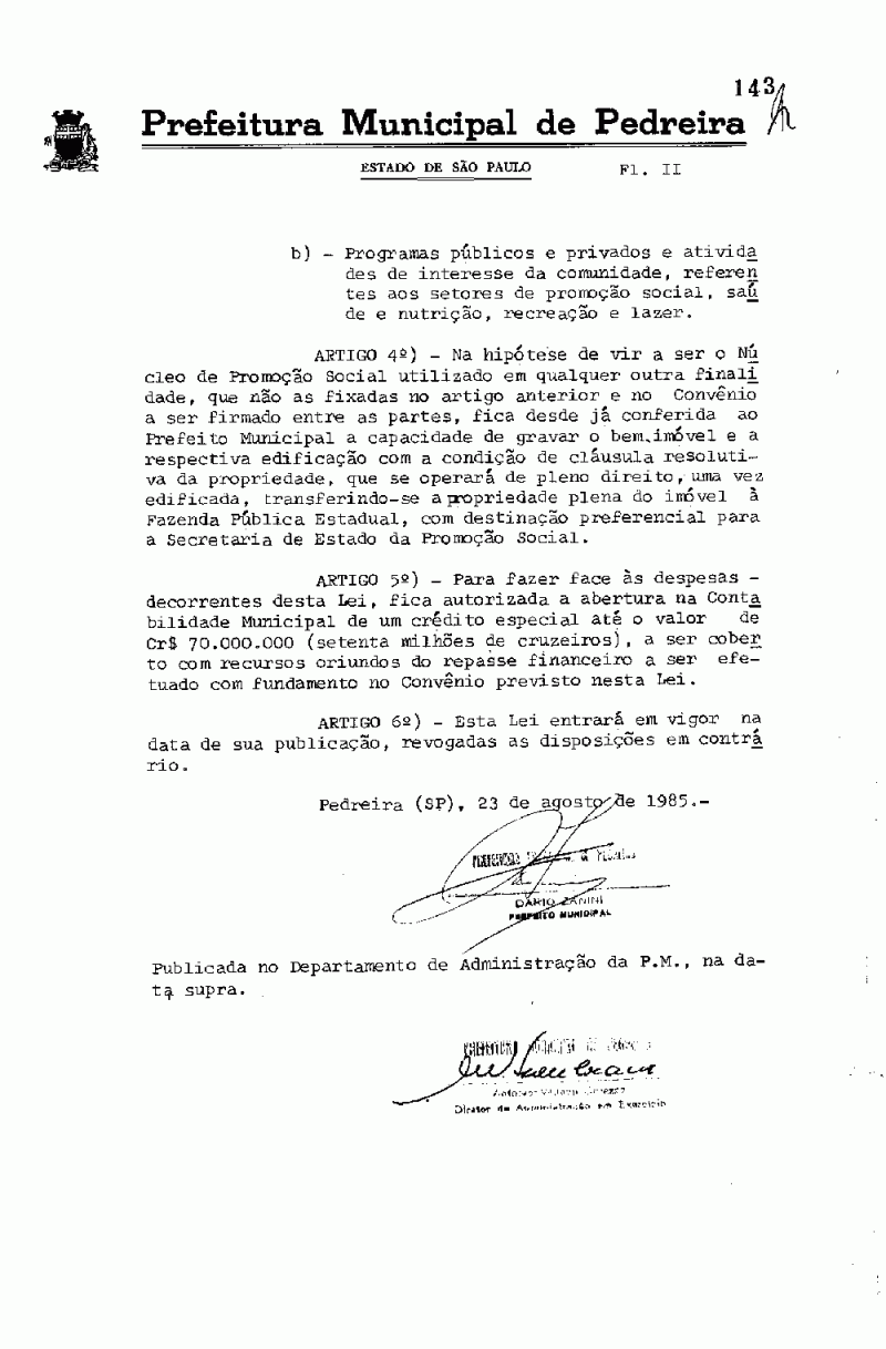 Lei Municipal - N° 1165 de 23/08/1985